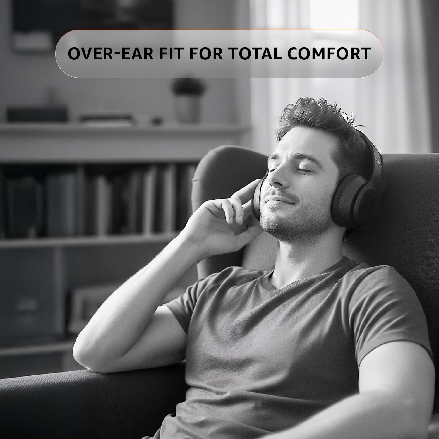 Amazon Basics Wireless Over Ear Headphones, Bluetooth 5.4, 40mm Drivers, 18H Playtime, Foldable Lightweight Design with Aux Support, Deep Bass & Mic, Black