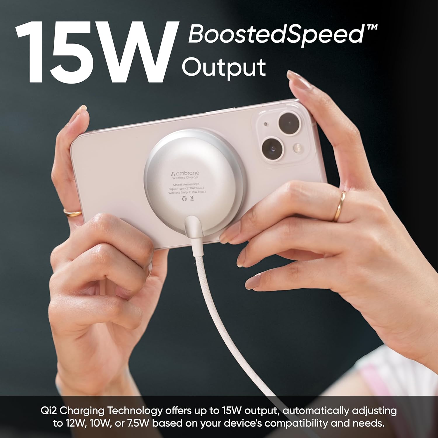 15W Qi2 Wireless Charger MagSafe: The AeroSynQ B delivers up to 15W of power, making it an ideal choice for fast and efficient wireless charging of your devices.