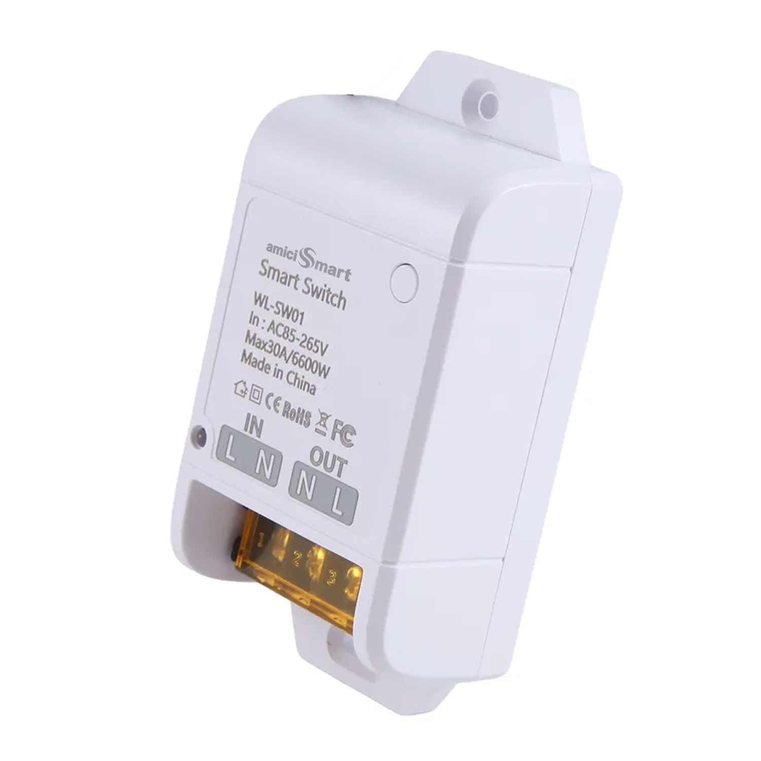 amiciSmart Wifi Smart DIP 1 Way Switch For Home Automation, 30A Timer Switch Compatible With Alexa, Google Assistant Works With Smartlife App For Mobile Control (6600W)