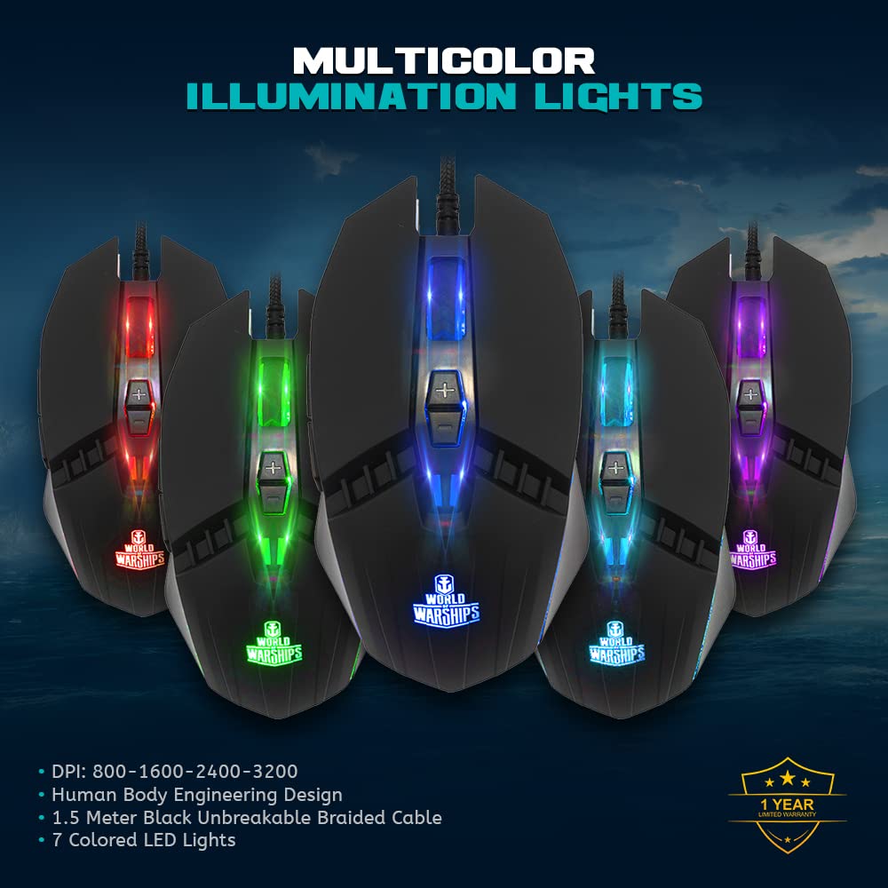 Ant Esports KM500W Gaming Keyboard and Mouse Combo, LED Wired, Ergonomic & Wrist Rest, Programmable, PC/Laptop/Mac – World of Warships Edition – Black