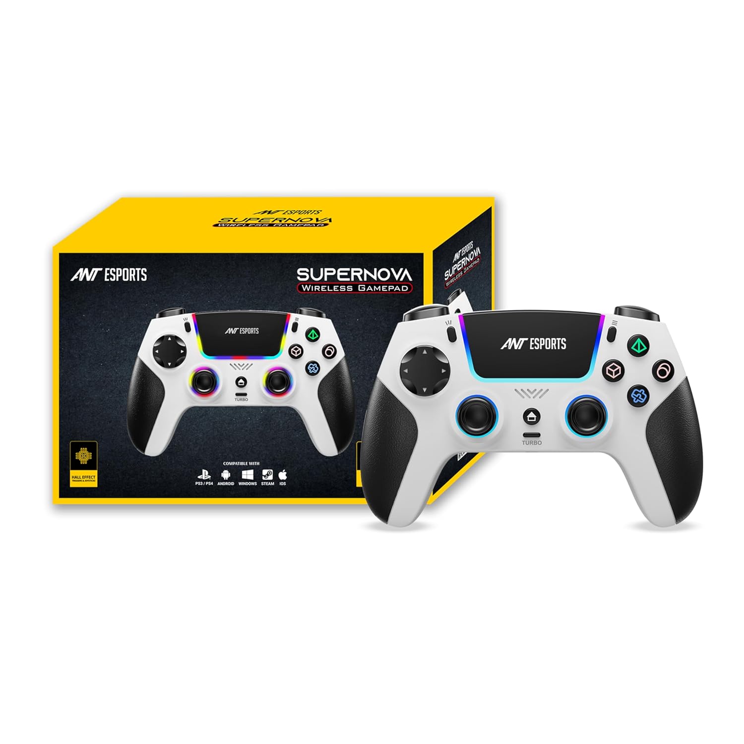 Ant Esports SUPERNOVA Tri-Mode Enhanced Wireless Gamepad, Bluetooth & 2.4G Dongle, Hall Joysticks &Triggers, Touchpad, RGB, No Stick Drift, No Dead Zone -For Windows PC, Android, Steam, iOS, PS4_White