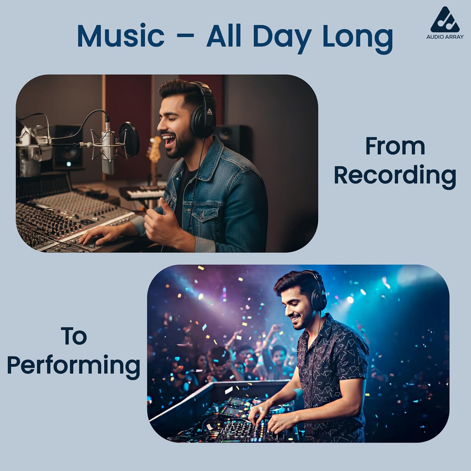 Audio Array AH-45-BK Studio Monitoring & Live Recording Headphones | 20-20KHz, 32 Ω, 100dB SPL | 40mm Depp Bass Closed-Back Driver | 3m OFC Cable | 3.5mm + 6.3mm Adapter (Black)