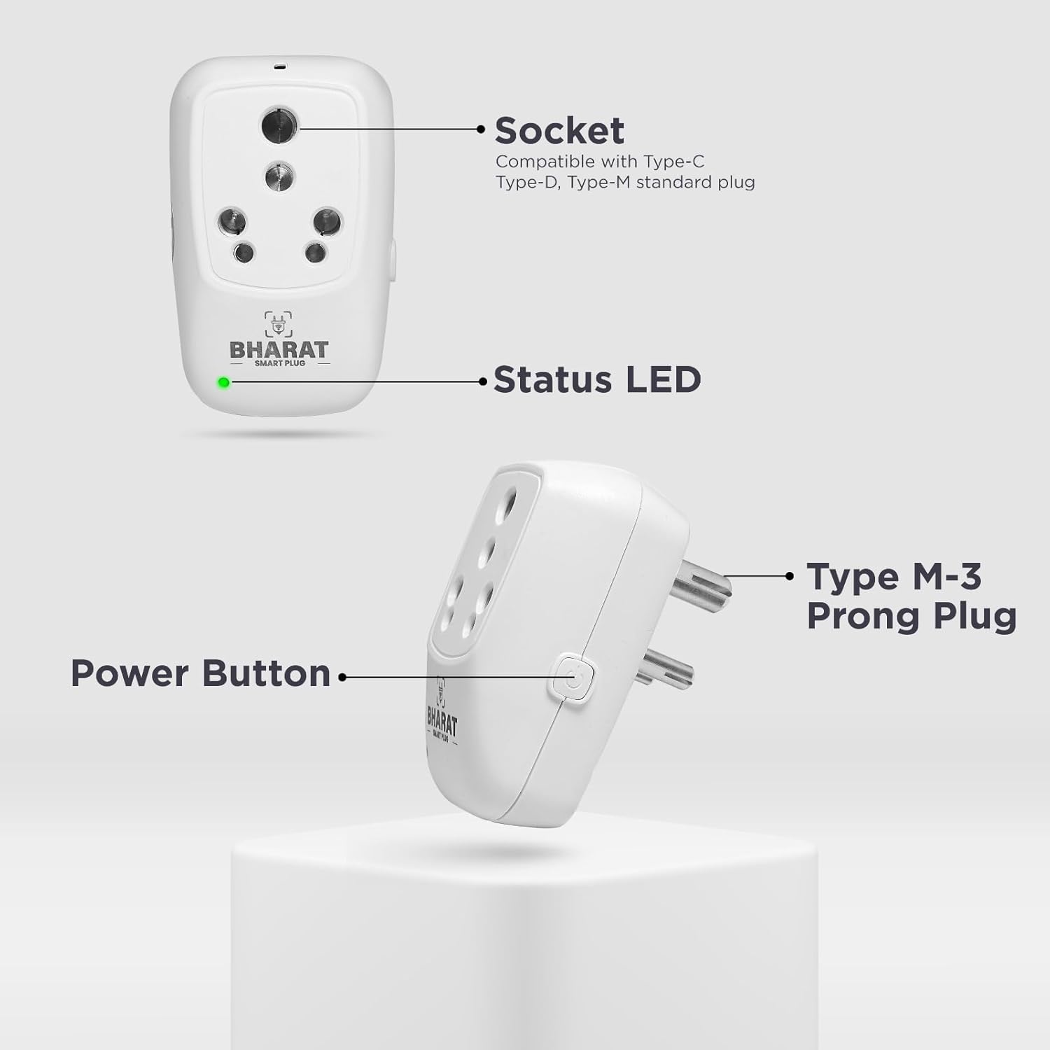 Bharat Smart Plug 16A Heavy Duty | WiFi Alexa Enabled Smart Plug for AC, Geyser, Heater | Energy Monitoring, Timer, Remote Control | No Hub Required | Made in India | Universal Socket