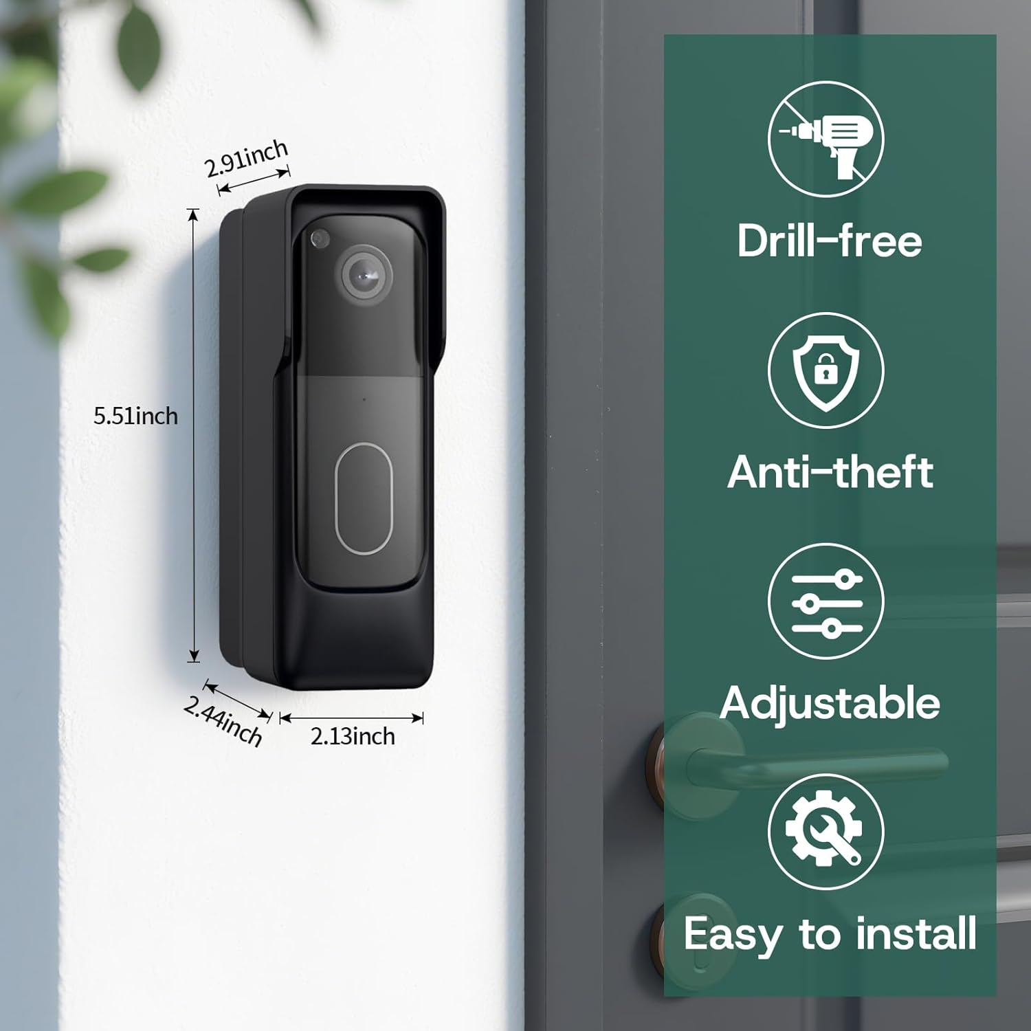 Anti-theft doorbell mount: It also provides protection, shielding the doorbell from direct sunlight, rain, dust and scratches, thus extending the doorbell’s service life.