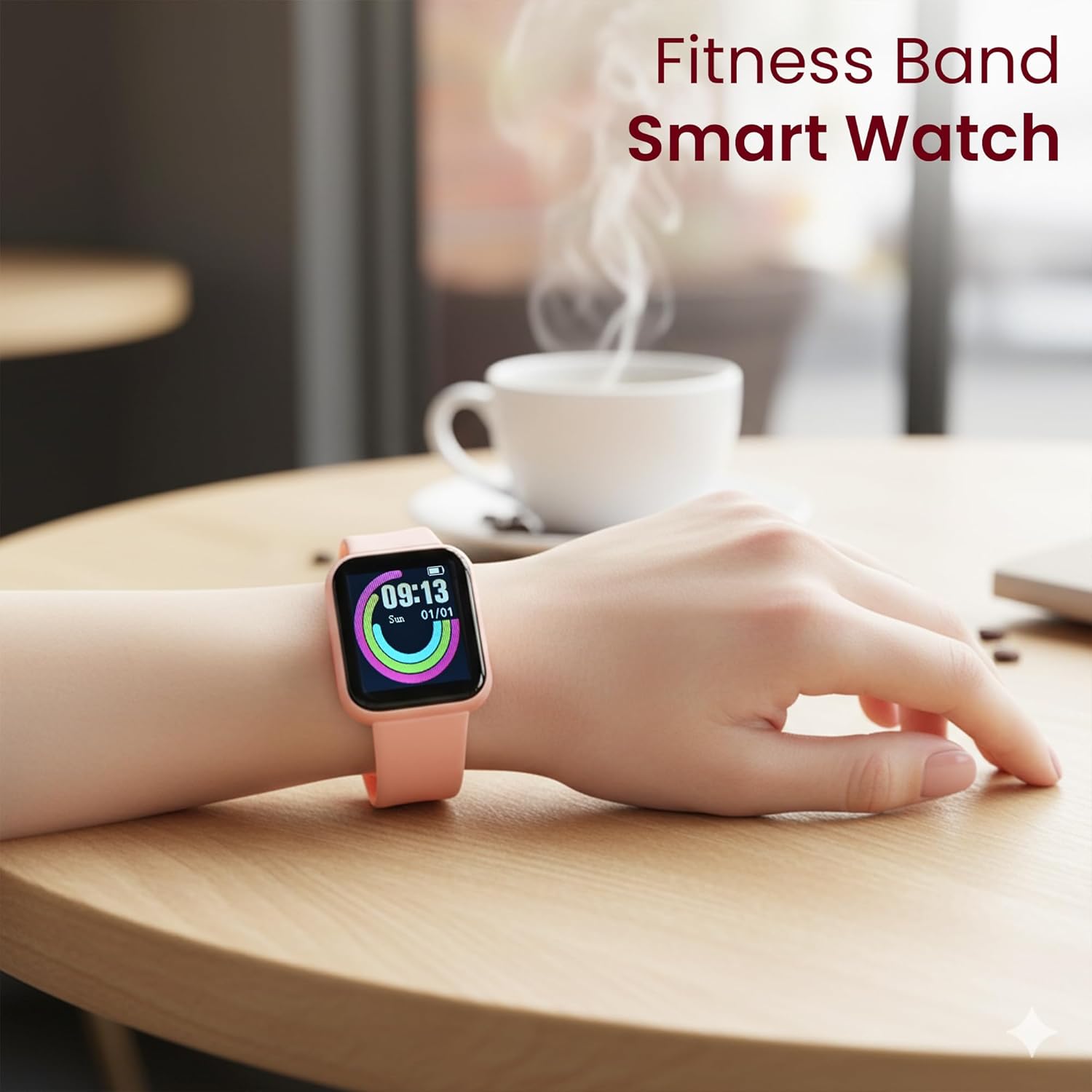 Bouncefit D20 Y68 Fitness Band Smart Watch for Men, Women, Boys, Girls, Kids – Single Touch Interface, Water Resistant, Workout Modes, Quick Charge Sports Smartwatch – Pink