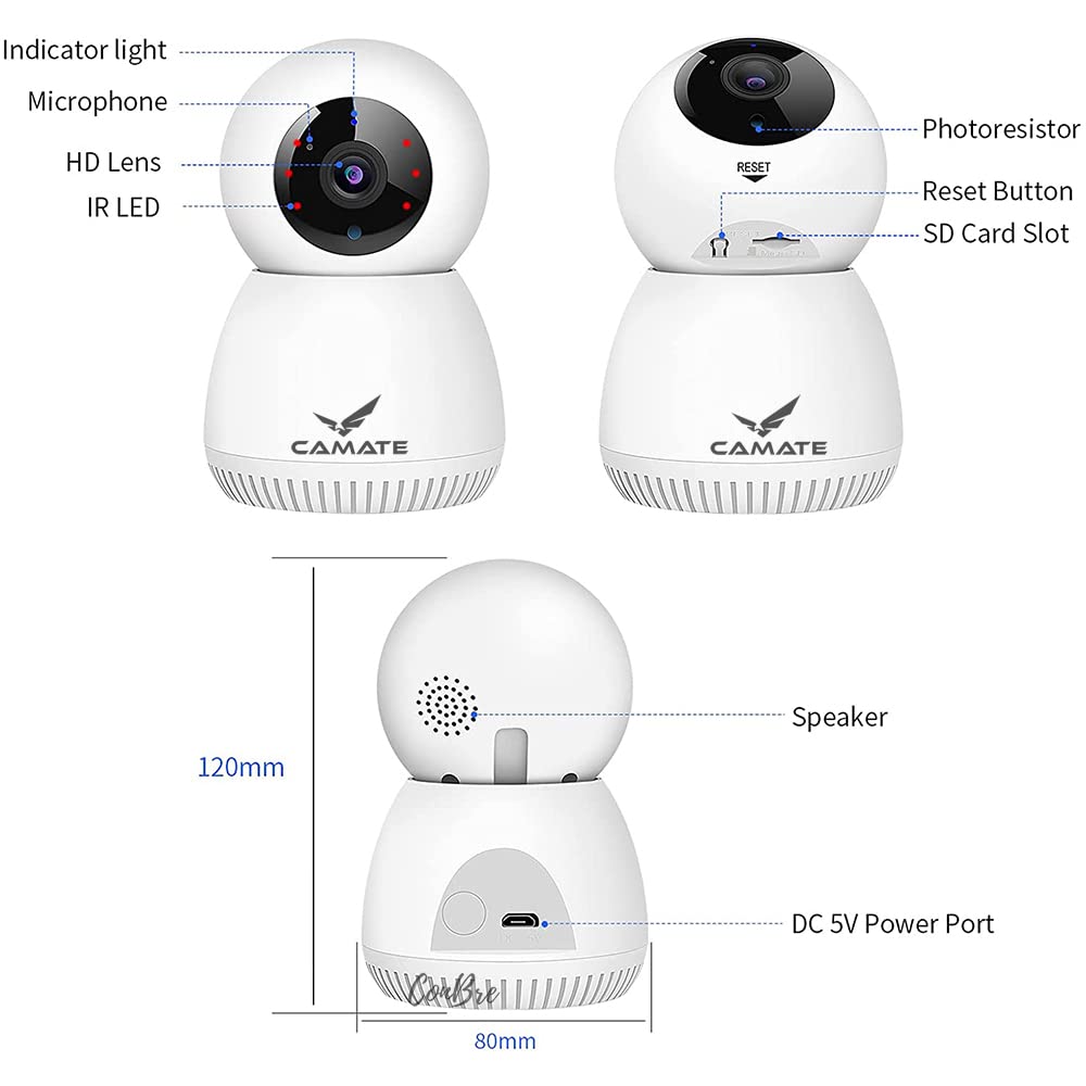 CAMATE RoboCam 3MP (5/2.4 Ghz Dual Band) Indoor WiFi CCTV Security Camera | Motion Detection & Tracking, Night Vision, 2-Way Audio, Support 256GB SD Card (3MP – 5GHz)