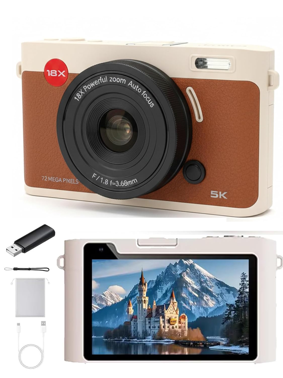 72MP & Ultra HD 5K Digital Camera- Equipped with an advanced CMOS image sensor, this mini digital camera effortlessly captures stunning 72MP high-definition photos and supports ultra-clear 5K video recording. With a simple, hassle-free setup, it’s perfect for kids, teens, adults, and beginners—an ideal camera to suit everyone’s needs.