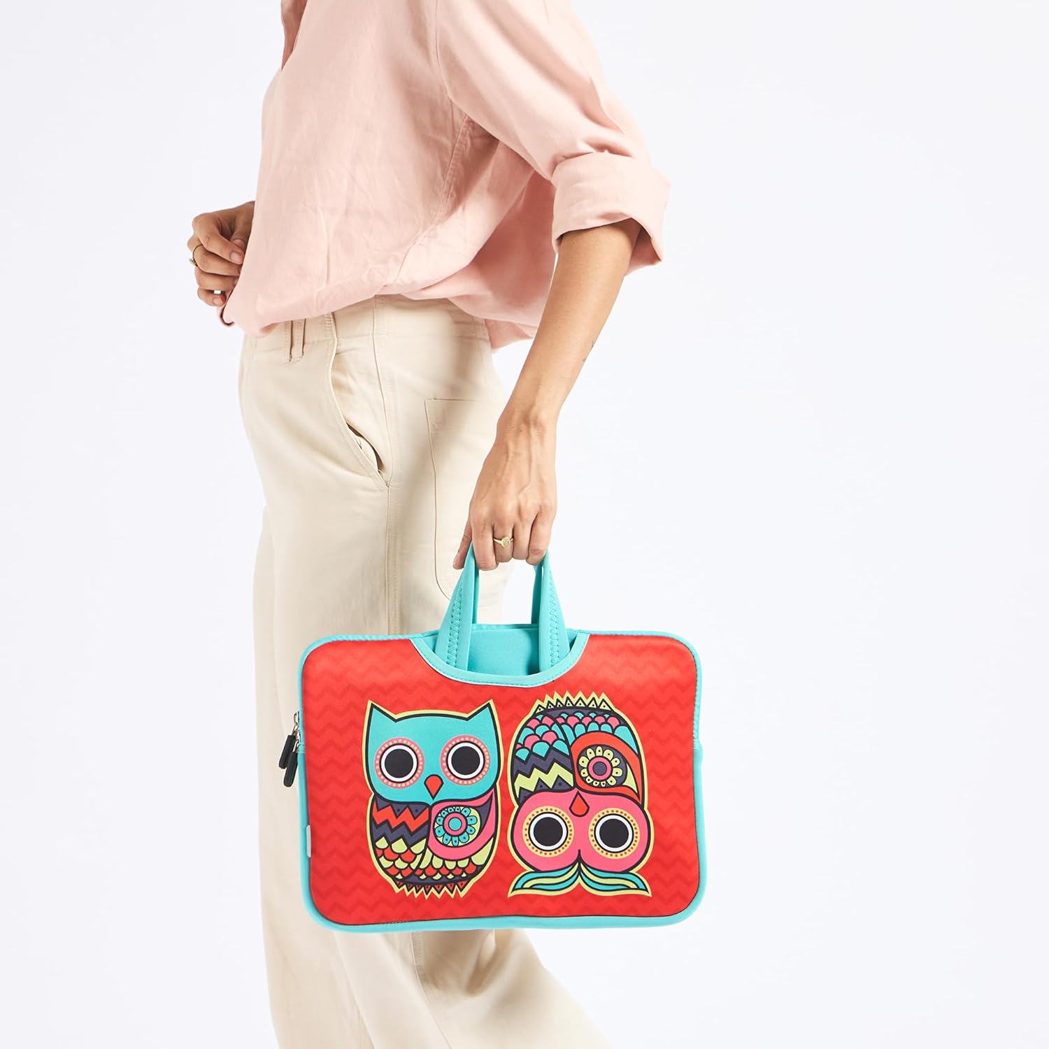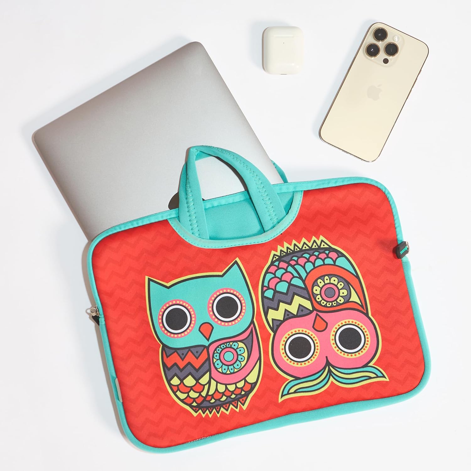 The Good Vibes 15.6 inches Laptop Sleeve with gorgeous colours blends with beautiful prints to give your laptop the most stylish spin ever. Made from Neoprene and Fluff Lining, it will keep your laptop warm, dry and scratch free. Spacious and sturdy, it can hold laptops up to 15.6 inches screen size. The two handles make it easy to carry around and can be tucked inside when unused & has 80% zip closure during usage of handle. [Disclaimer: May not accommodate laptops with large bezels, please check dimensions against laptop dimensions.]