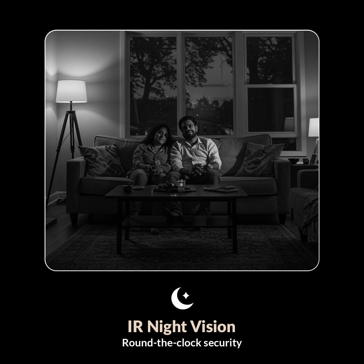 IR Night Vision up to 15m – Infrared LEDs capture clear black-and-white video even in complete darkness, ensuring your Wi-Fi camera for home is effective 24×7.
