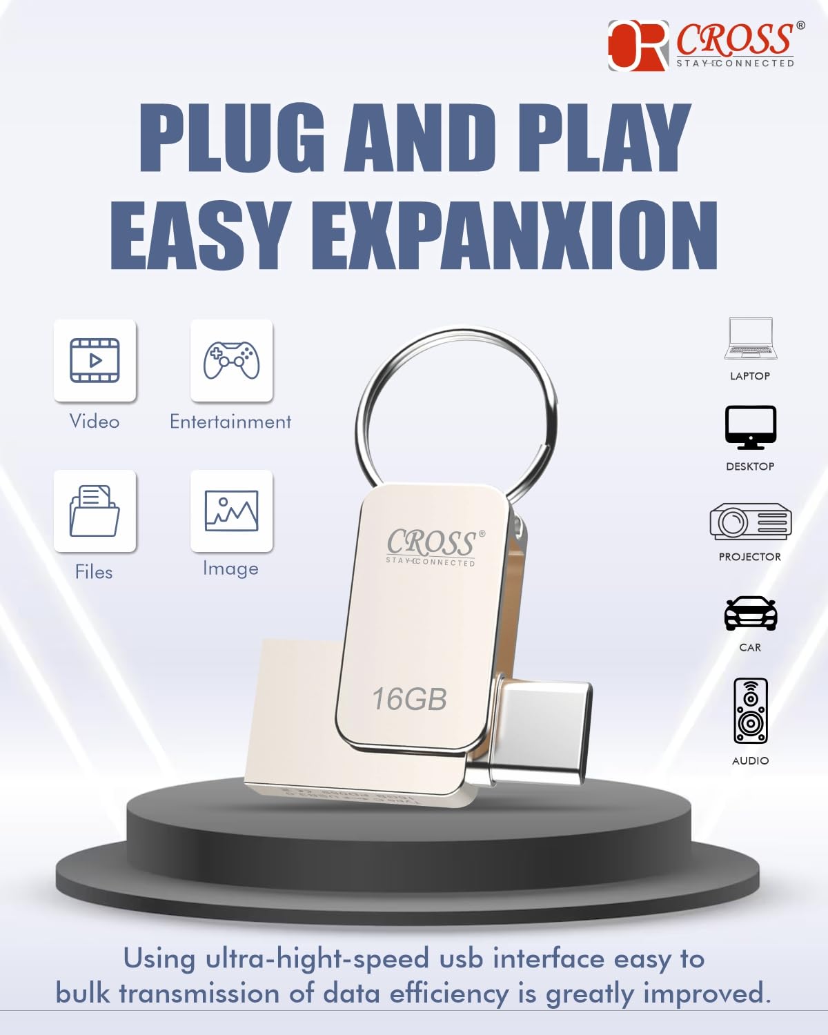 2 IN 1 PEN DRIVE : CROSS pen drive usb combines the USB 3.0, Type-C, 2 interface into one flash drive, allows you can access the same file through various devices, or put all file format in one flash drive, brings more efficiency and convenience into life and work.