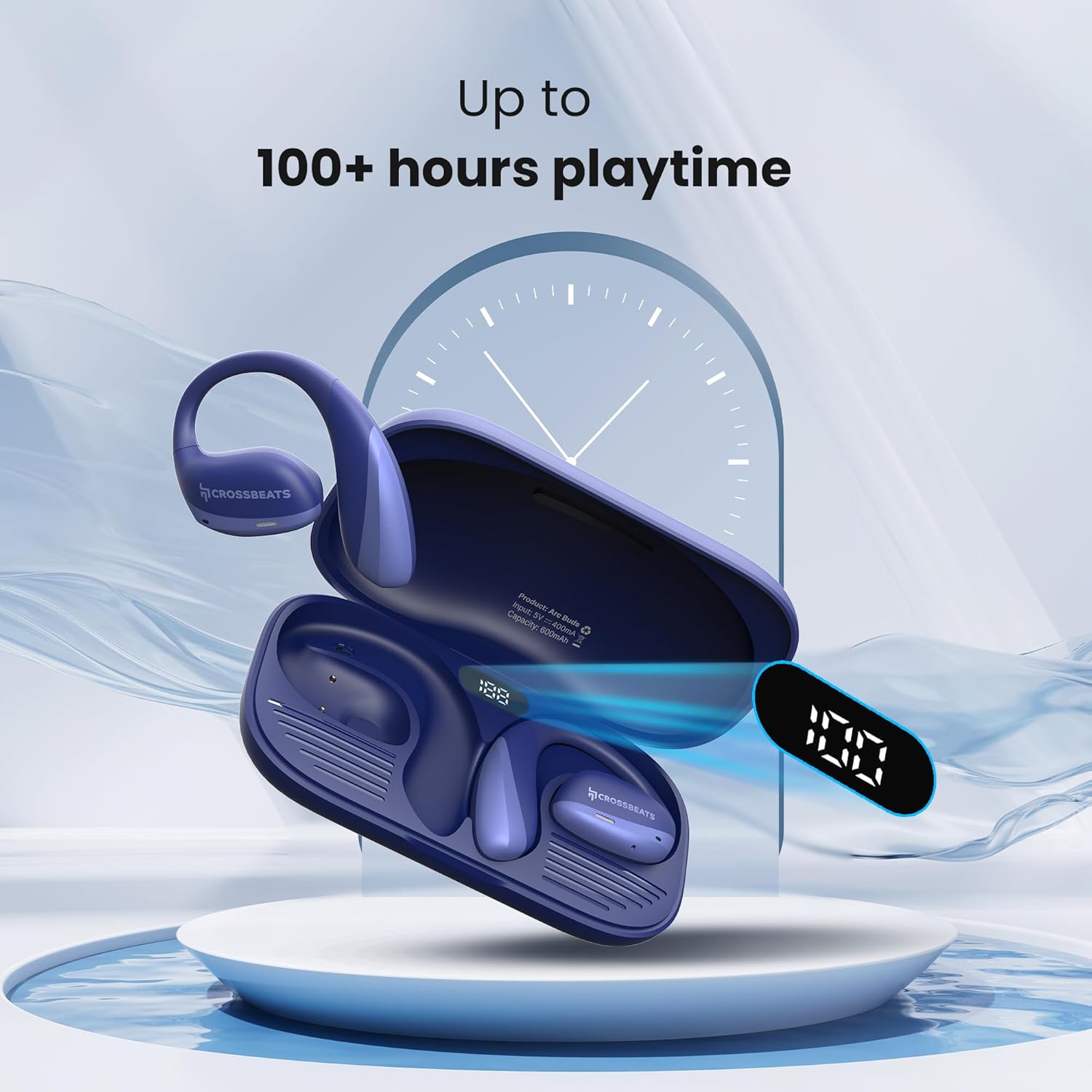 CrossBeats Arc Buds OWS Open Ear Wireless Earbuds | Spatial Audio Headphones & Head Tracking | Gaming Bluetooth Earphones | 100hr Playtime | 14.2mm Drivers IPX5 Rating Type-c Fast Charging (Blue)