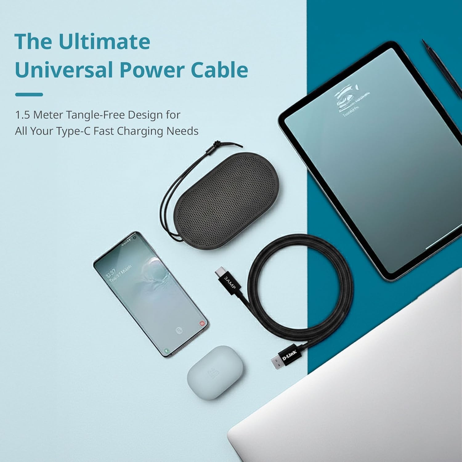 D-Link DPA-FC302 || 65W Fast Charging Type-A to Type-C Cable | 1.5m Nylon Braided | 3.0A Current | Metal Connector | Universal Compatibility for Smartphones, Tablets & Power Banks