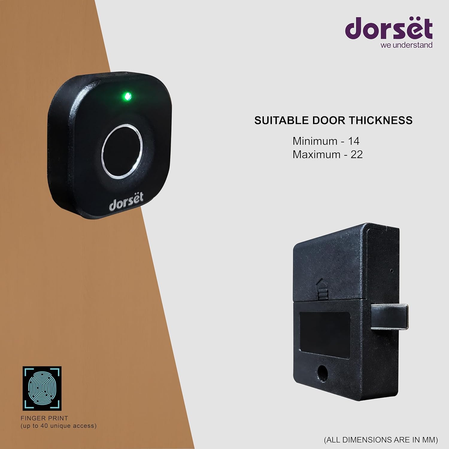 Dorset Smart Fingerprint Drawer & Cabinet Lock | Biometric Furniture Lock | 20 Unique Access | Fits 15–20mm Door Thickness | Home & Office Security | DG 304 – Black