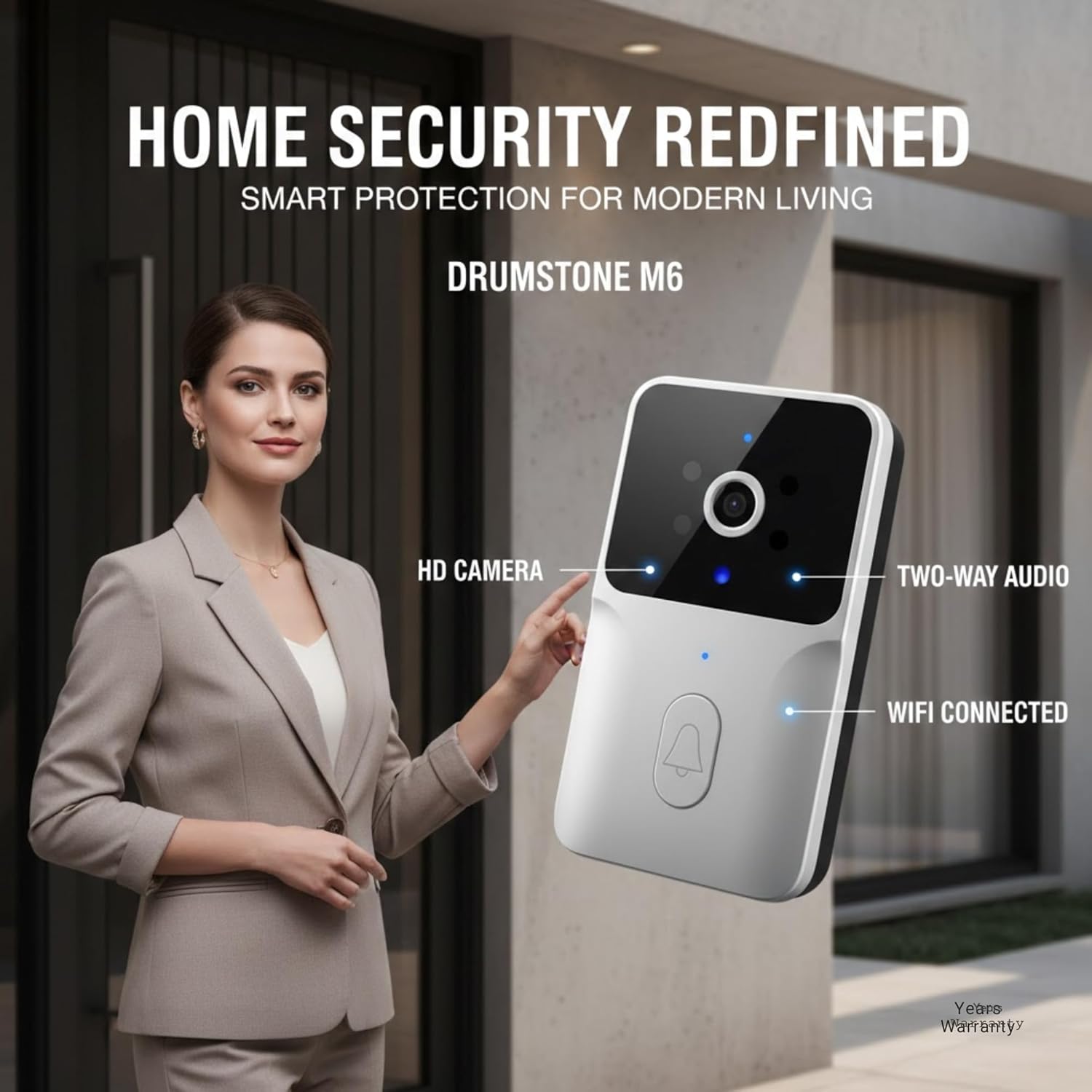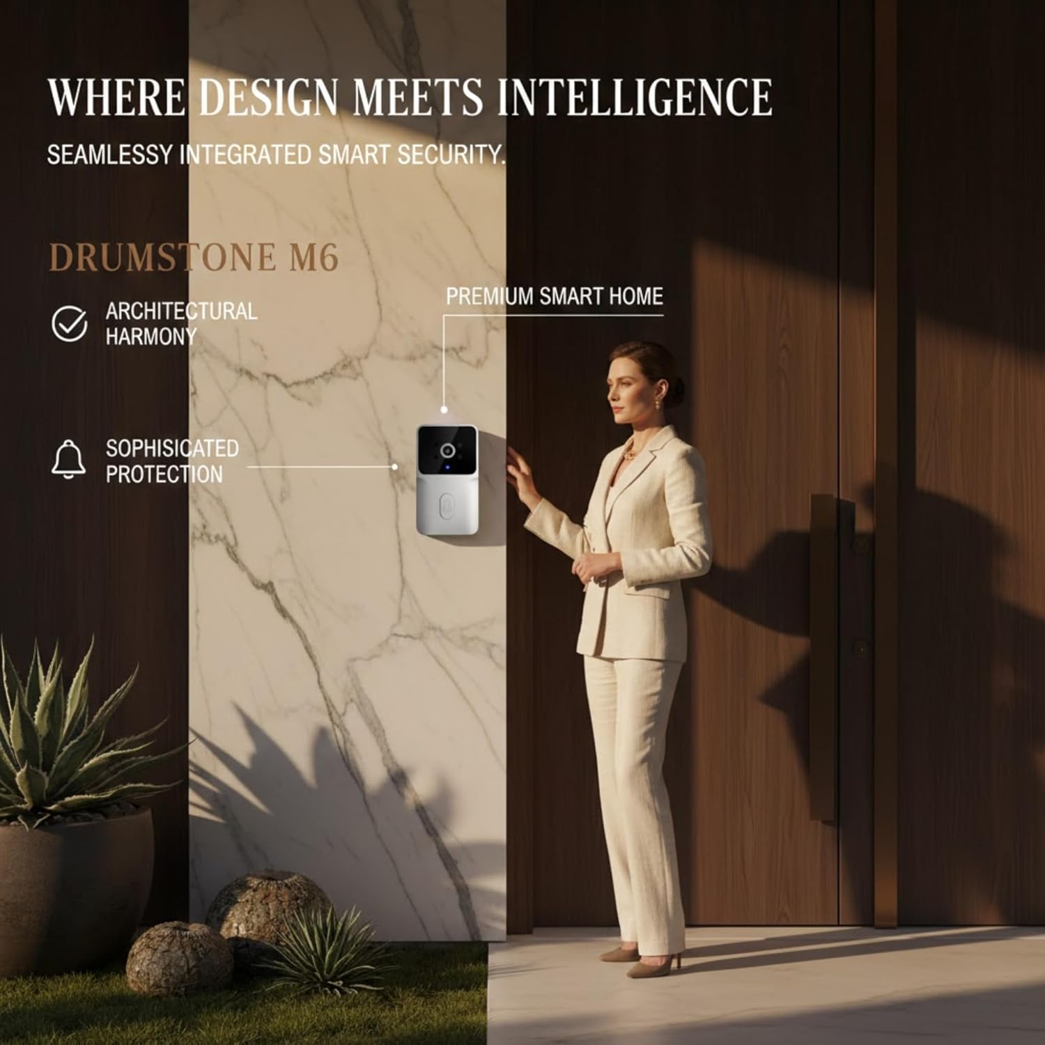 Drumstone M6 WiFi Video Doorbell Camera with Two-Way Audio, Motion Alerts, Night View, App Control & Indoor Chime for Home Entrance