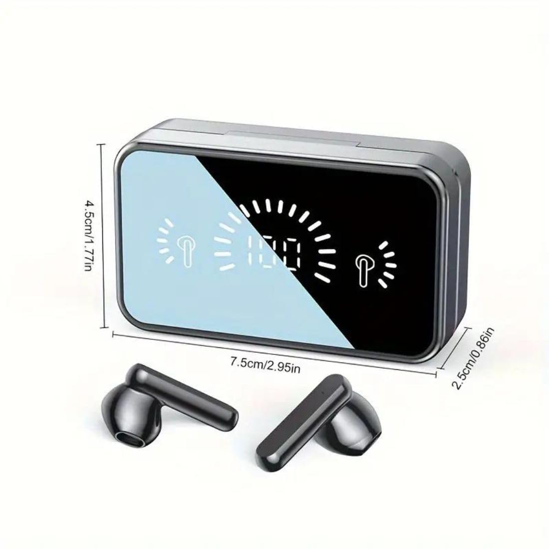 5h Music Time -earphones wireless LED power display outside of the case is to show the power level for charging case and earbuds. When charging for the case, the LED light will start to flash from 1 to 100. When you put earbuds into the case, then earbuds will start to be charged. 2000MAH battery capacity charging case. So, you can enjoy 5H music time in total via using in turn.