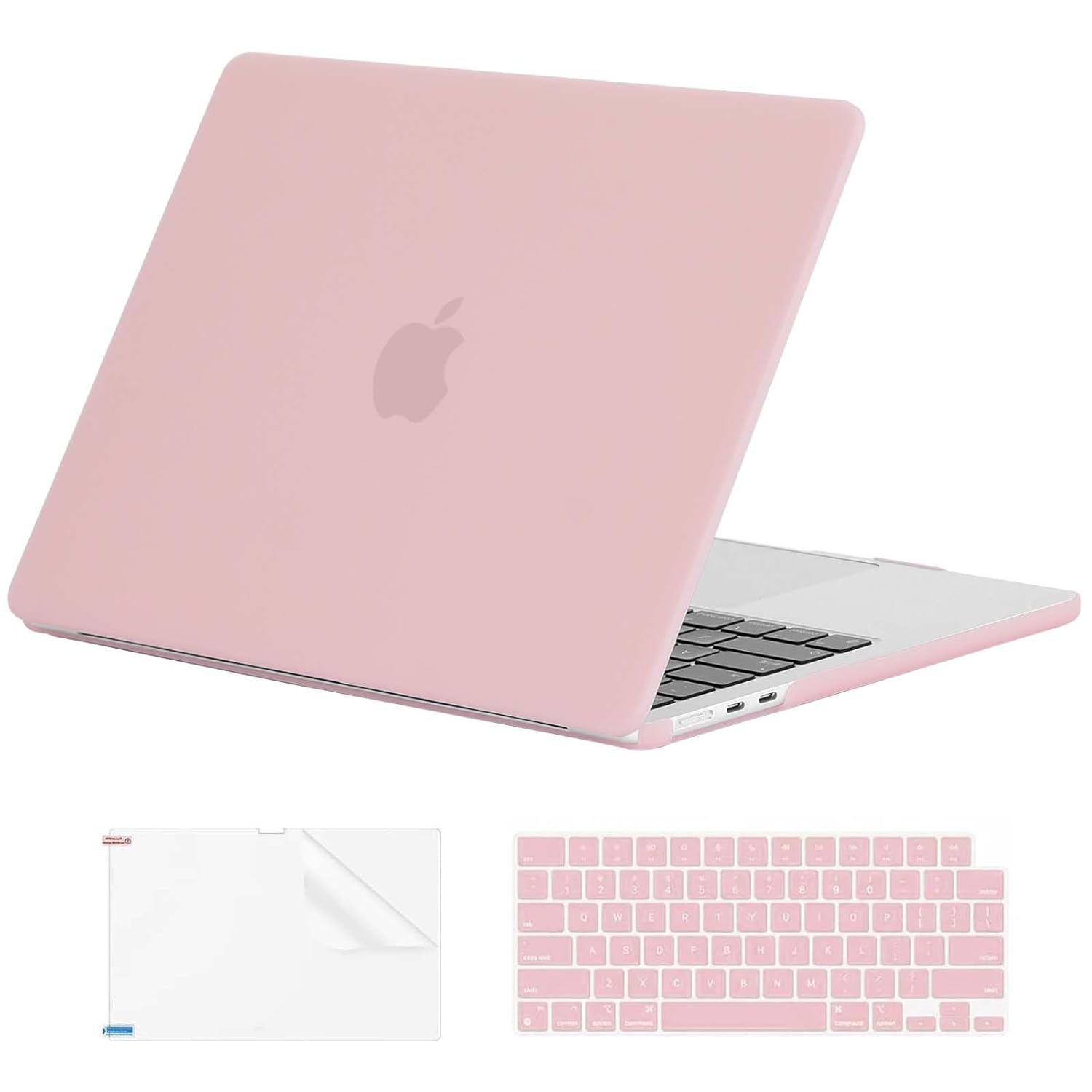 EooCoo Hard Shell Case Compatible for Apple MacBook Air 13.6 inch 2026 2025 2024 2022 M4 A3240 M3 A3113 M2 A2681 with Touch ID,Mac Laptop Case Cover & Keyboard Skin Cover & Screen Protector-Matte Pink