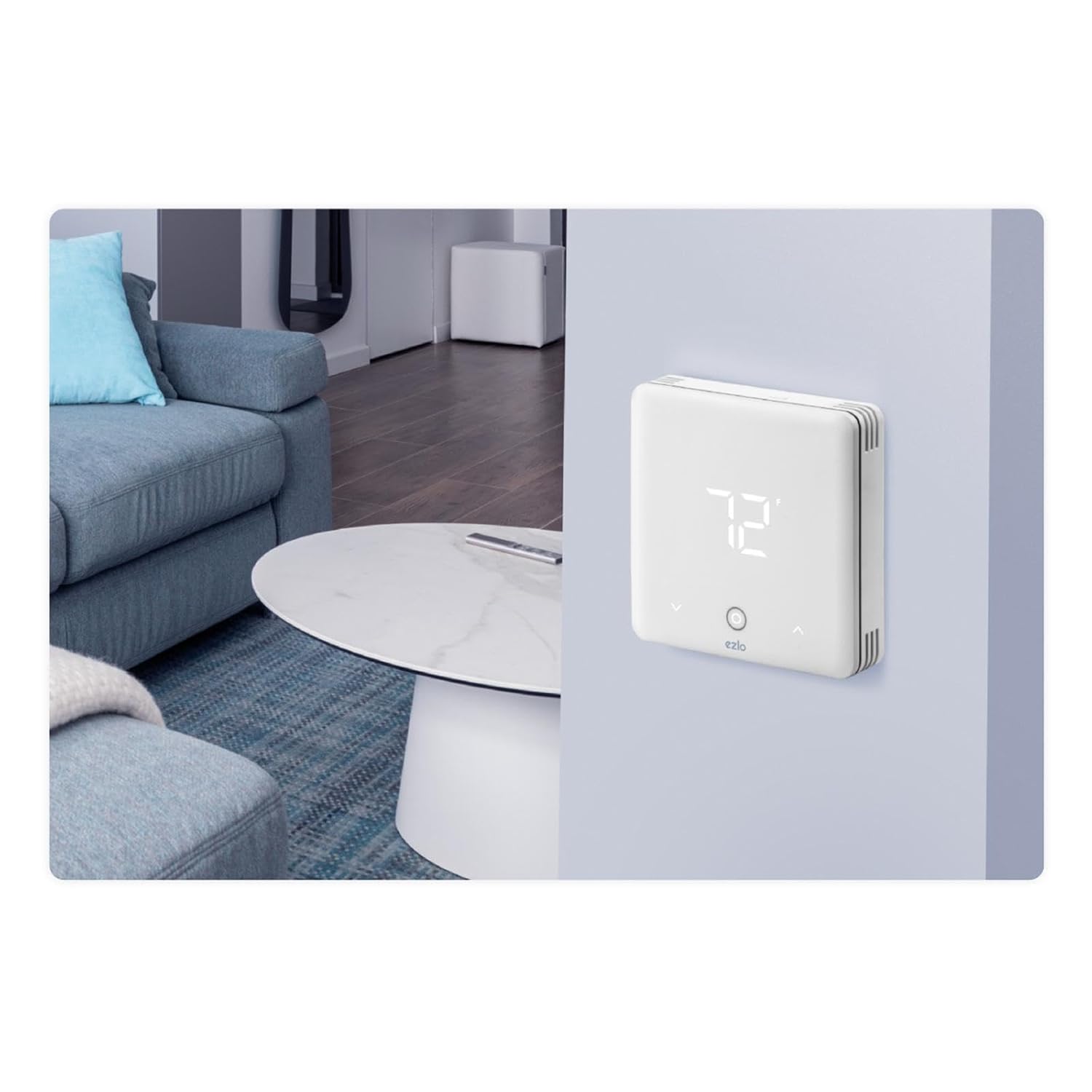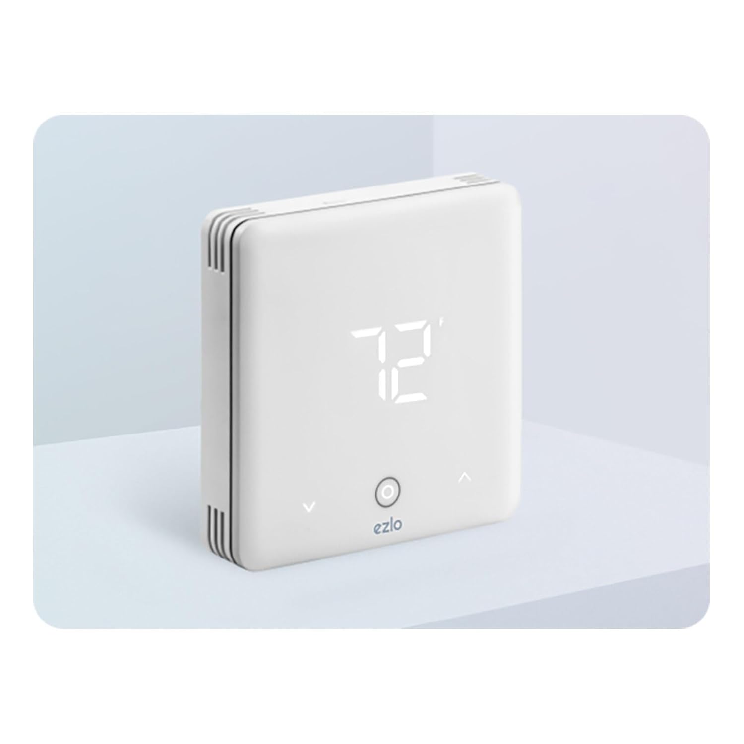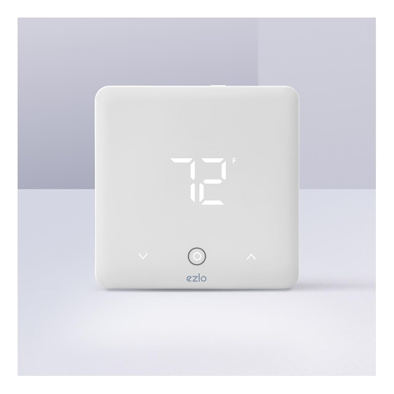 The Ezlo Z-Wave Plus Smart Thermostat, 800 Series offers a stylish interface and simple controls to change and maintain temperature in your home or office. The smart thermostat’s LED screen lights up when in use and turns off automatically when not in use to save power. Control the Ezlo Smart Thermostat with simple one-touch controls on the thermostat, or remotely from your smart device via Z-Wave connections. This model includes Z-Wave 800 certification, which promises compatibility with all existing Z-Wave devices, plus extended wireless relay range, three layers of encryption, faster operation & longer battery life compared to older Z-Wave versions. The Thermostat can also be included into an existing Z-Wave network to work with other Z-Wave devices in smart scenes to further automate and enhance your smart home. The Ezlo Z-Wave Plus Smart Thermostat offers simple but intuitive touch controls on its backlit LED touchscreen. The current temperature sits in the middle of the screen. Raise or lower your target temperature with the up and down arrows or access settings with the center function button at the bottom of the screen. Program unique temperature set points for every day of the week based on your schedule. The Smart Thermostat provides 4 time periods to set per day to ensure optimal comfort levels and maintain energy efficiency. All of these settings can be adjusted from the thermostat or by using your smart mobile device through the MiOS mobile app. Control the Ezlo Smart Thermostat with Z-Wave Hub with the MiOS app for iOS/Android mobile devices. The MiOS app, along with the MiOS web browser Dashboard, bring all of your connected devices into a single user interface, making initial setup, device inclusion & scene configuration easy to accomplish. NOTE: Z-Wave compatible gateway or system hub required, sold separately. Contents: Thermostat, Base plate, (4) Wall anchors, (4) Wall mounting screws, (2) Base plate securing screws. Model Part #: EZL-TSTAT-US.