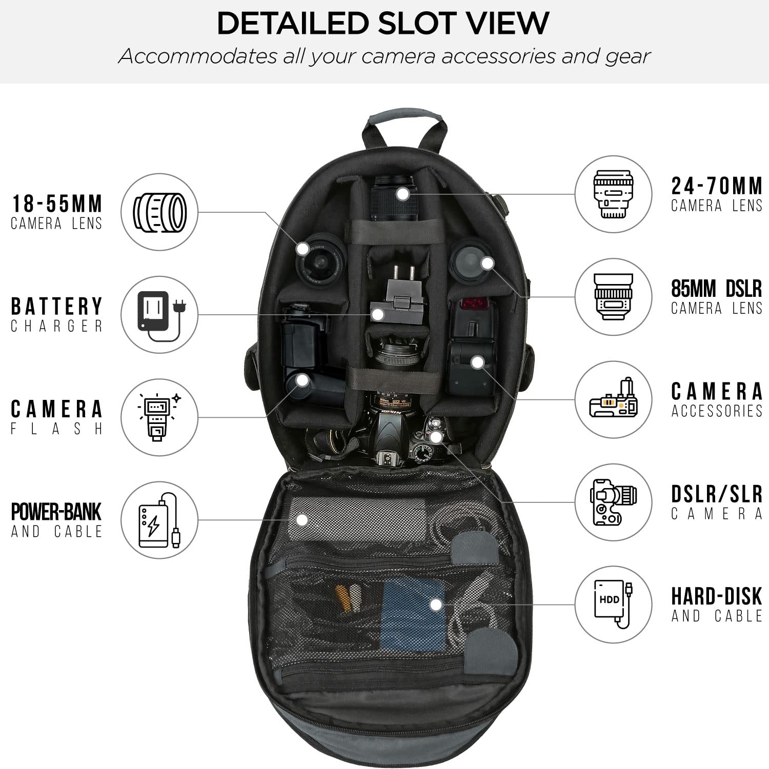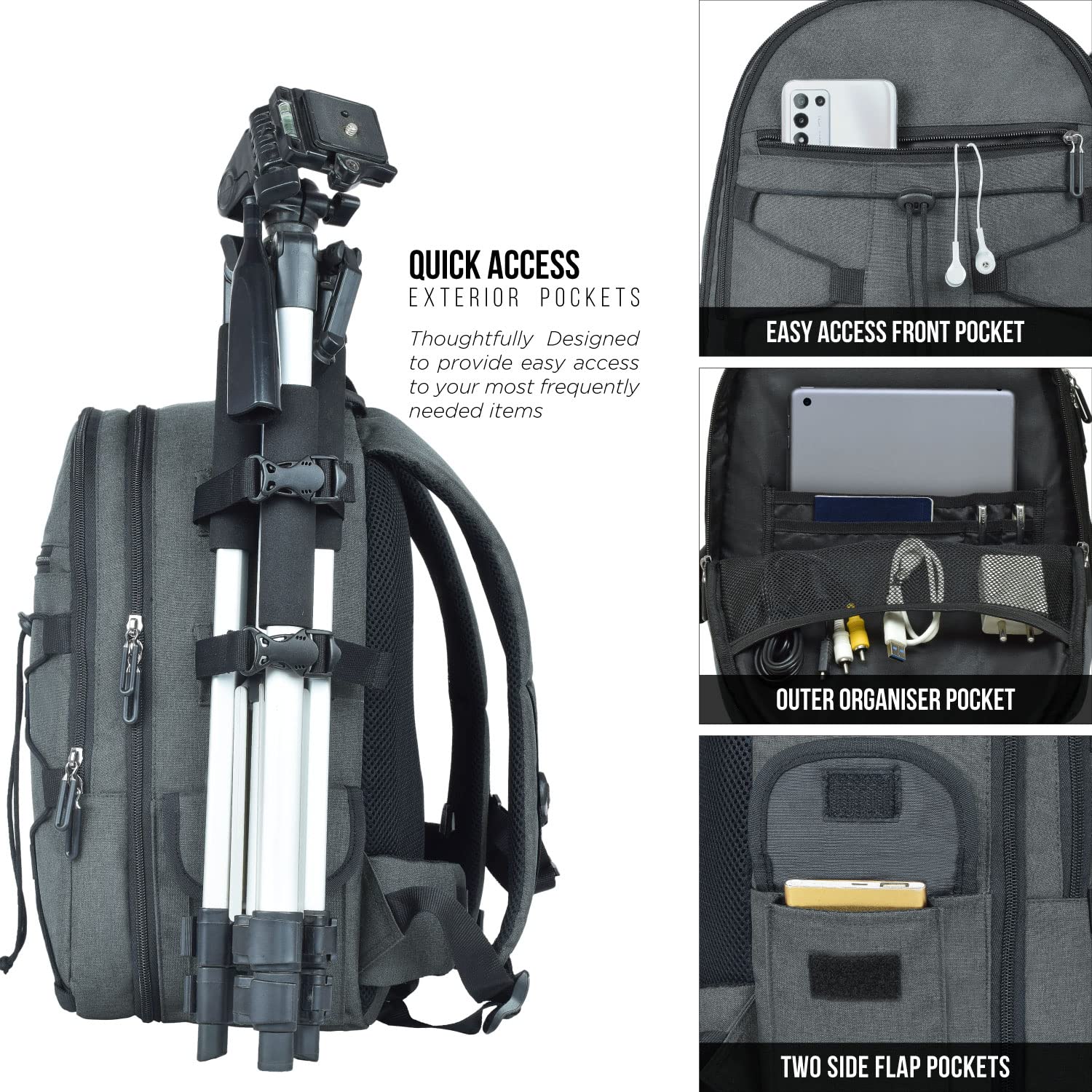 FATMUG Camera Backpack for SLR/DSLR, Lens, Accessories and Tripod Holder with Adjustable Compartments