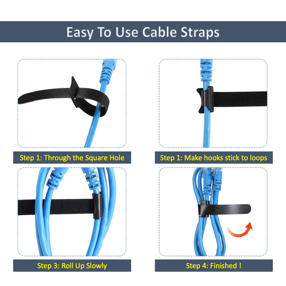 EASY TO USE: The hooks and fabrics are fully spread on 2 sides, allowing you to wrap on any cables. (You can connect 2 Cables together to make long cable strap).