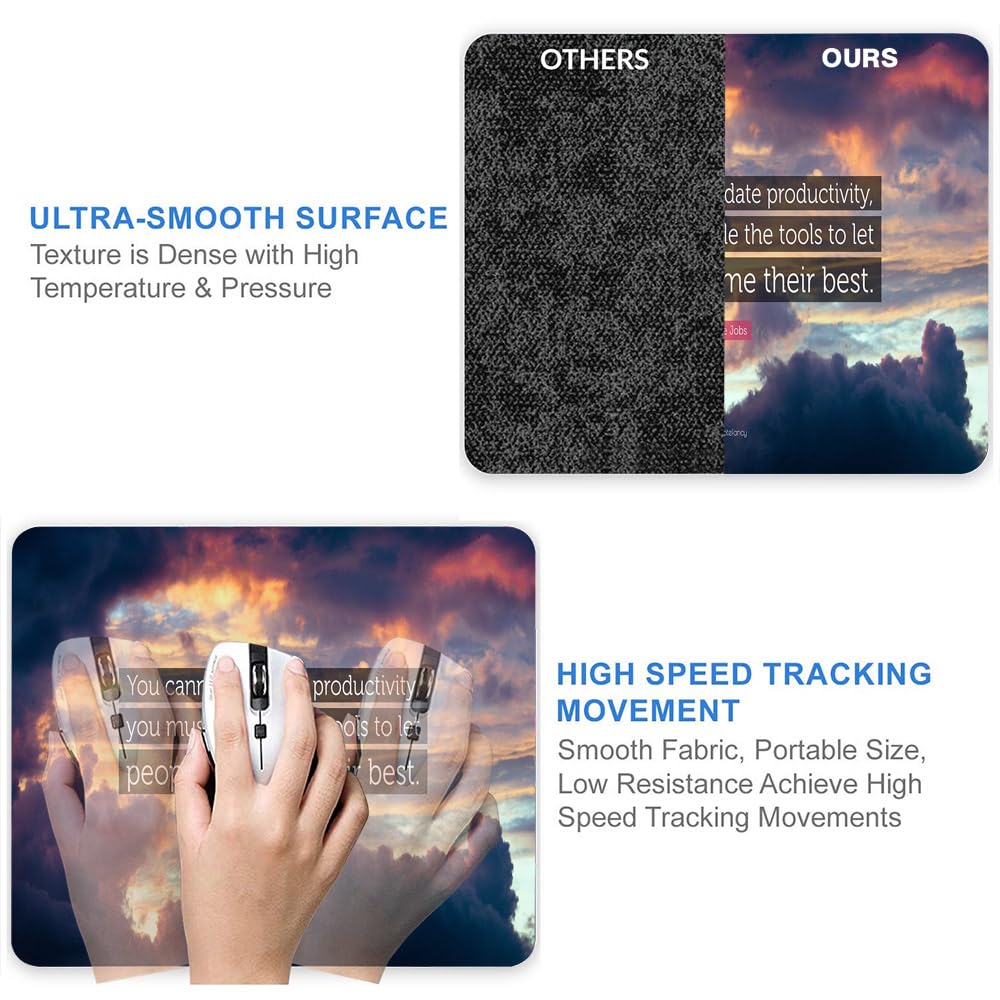 Non-slip Rubber Base: The soft and dense non-skid nature rubber base keeps the pad firmly in place. It provides stable operation of the mouse. Just immerse into your work or games without worrying about the annoying mouse pad movement.