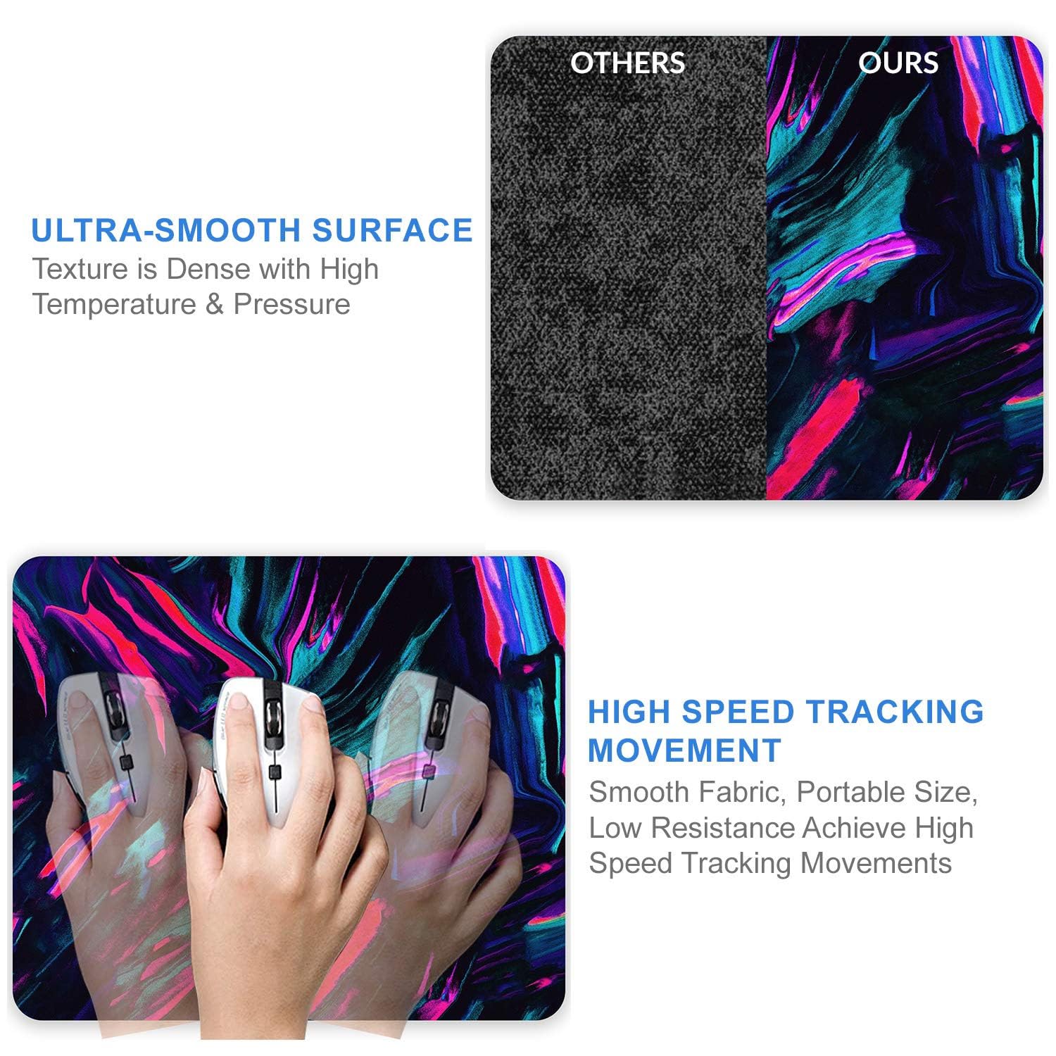 Non-slip Rubber Base: The soft and dense non-skid nature rubber base keeps the pad firmly in place. It provides stable operation of the mouse. Just immerse into your work or games without worrying about the annoying mouse pad movement.