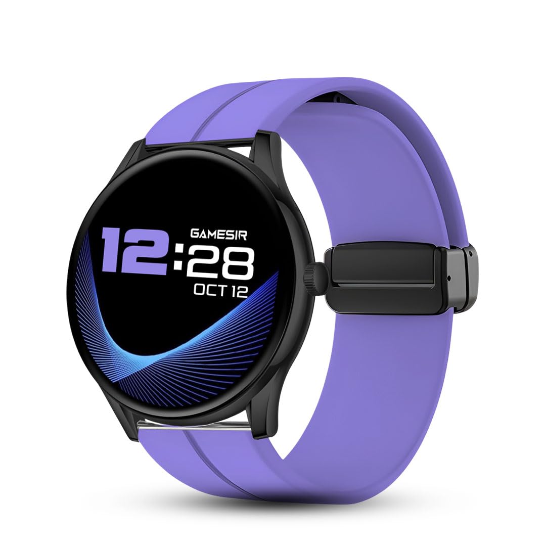 GameSir Glavito Round Dial Smartwatch with 1.49″ AMOLED Display, 100+ Sports Modes, IP67, Bluetooth Calling, Functional Crown Control, Health Tracking, 100+ Watch Faces, Men & Women (Magnetic Purple)