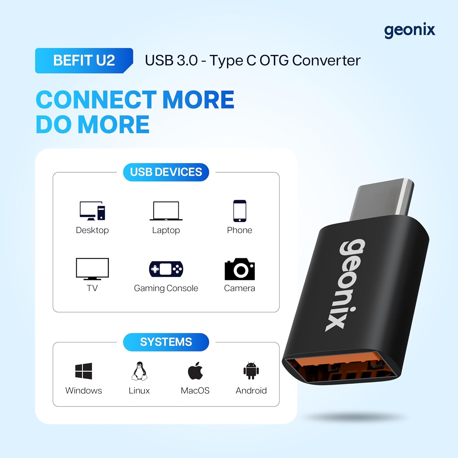 Geonix Befit U2 USB 3.0 to Type C OTG Converter | 5Gbps Fast High-Speed Data Transfer | Compatible for All Type C Devices, Smartphone, Laptops, Tablets, Chargers, MacBook (Black & Orange)