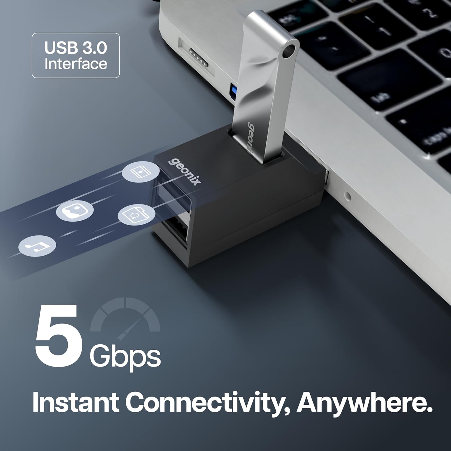 Geonix Befit UH3 USB Adapter HUB, 3 Ports, USB 3.0, Transfer Speeds Upto 5 Gbps, Lightweight Design, Multi OS Compatible, Plug and Play