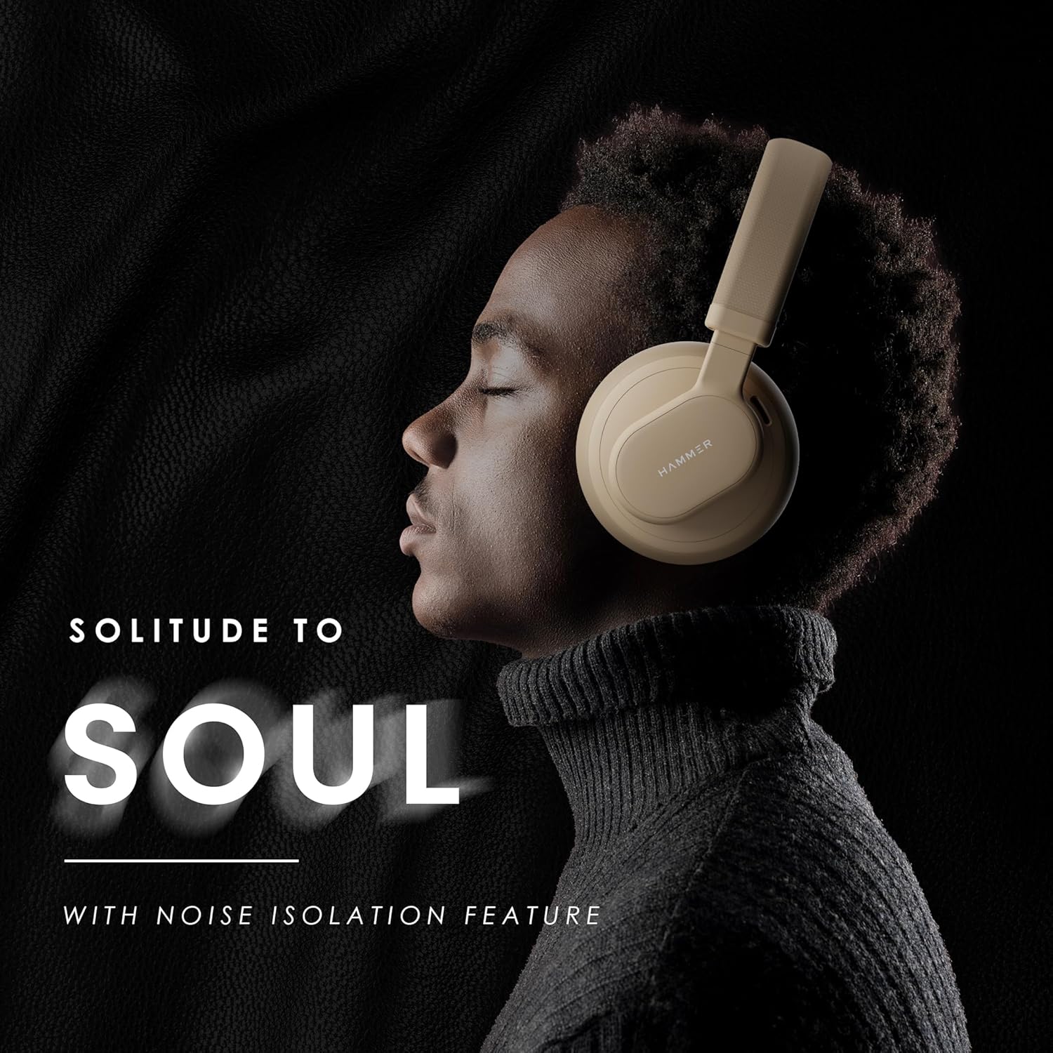 HAMMER Bash Max Over The Ear Wireless Bluetooth Headphones with Mic, Touch Control, Deep Bass, Upto 40 Hours Playtime, Bluetooth 5.3, Workout/Travel (Apricot)