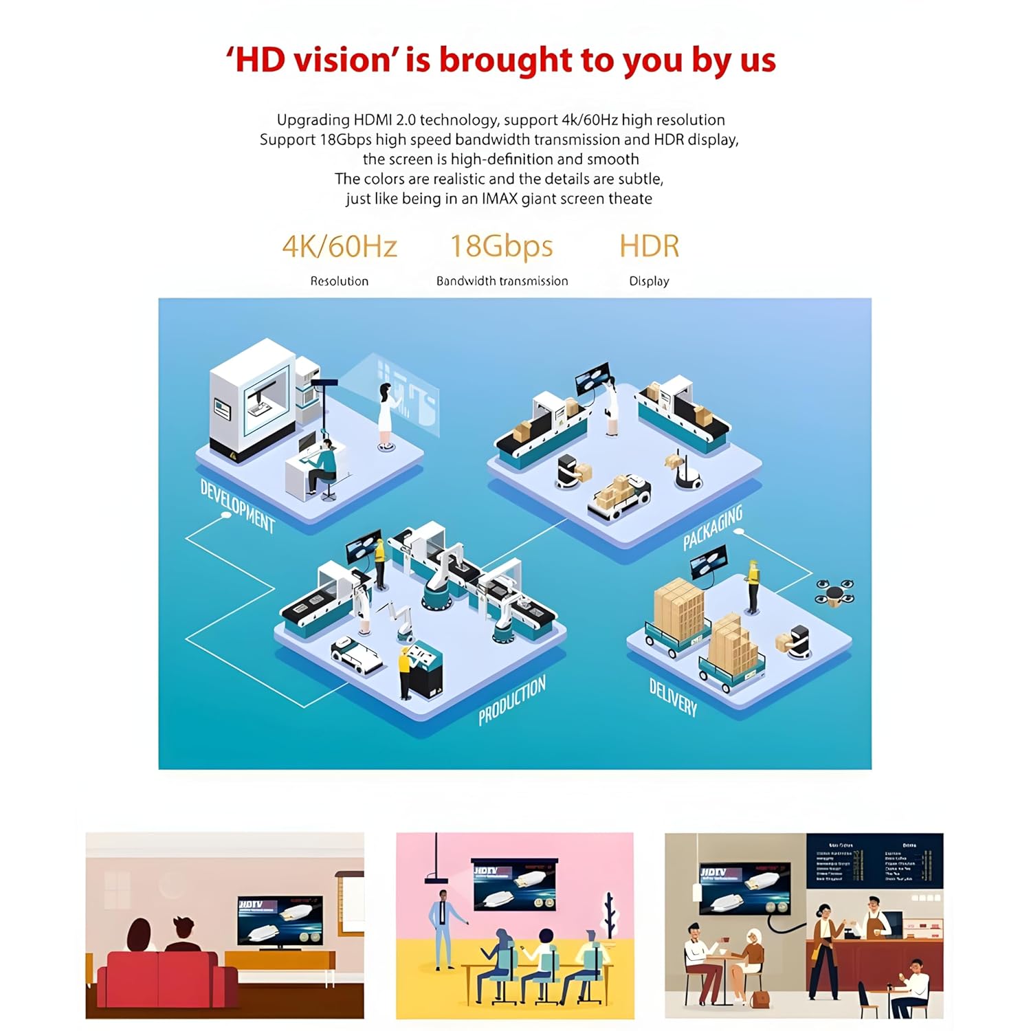 ✅ Pure Fiber Optic Technology – Unlike copper cables, this HDMI uses optical fiber for high-speed, lossless, interference-free 4K UHD signal transmission over long distances.
