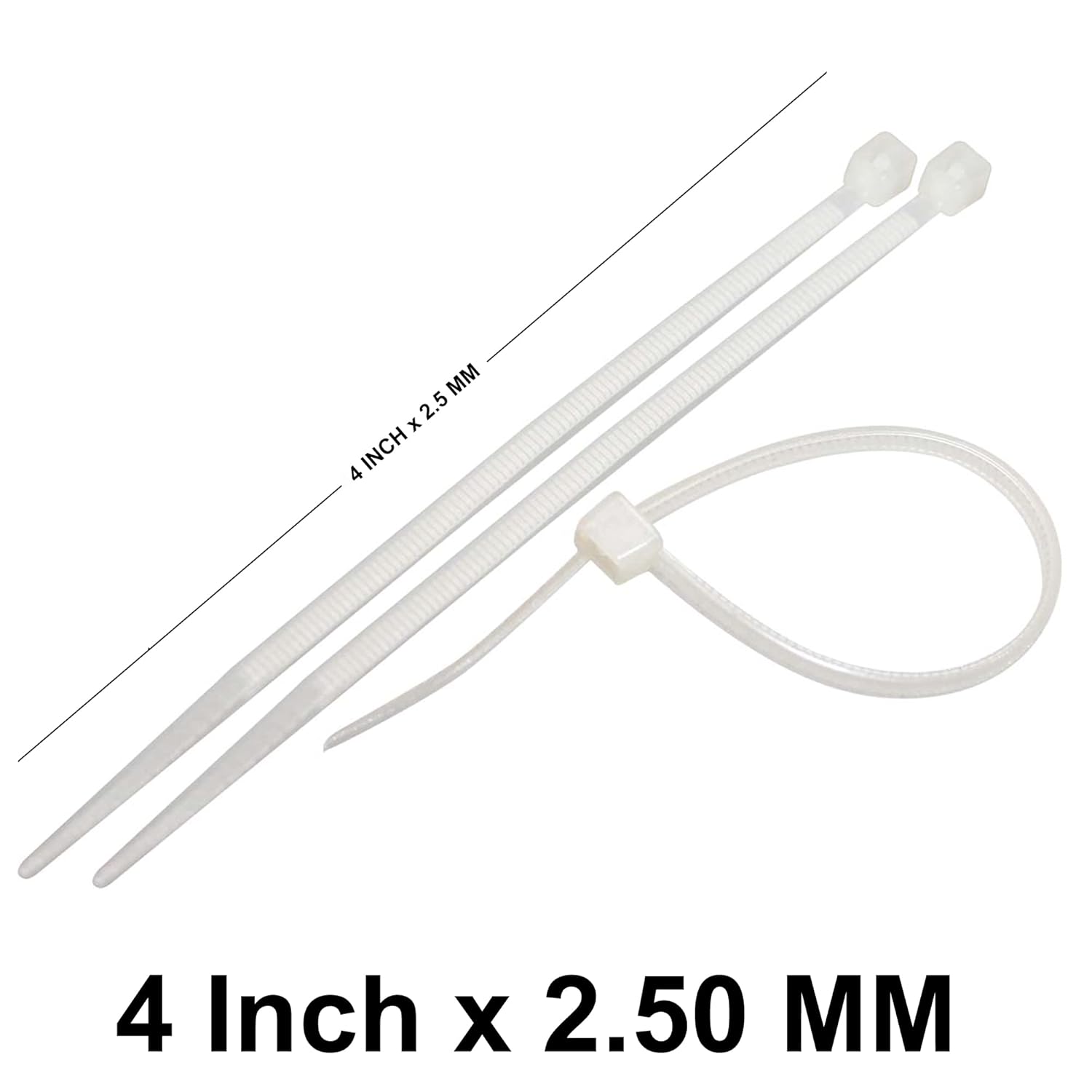 Hian 4 Inch Strong Nylon Wire Cable Tie Self-Locking Heavy Duty wrap Ties, Perfect for home, office, garage, travel and workshop, Multi-purpose- White (Small Size 100mm x 2.5mm, 4INCH)
