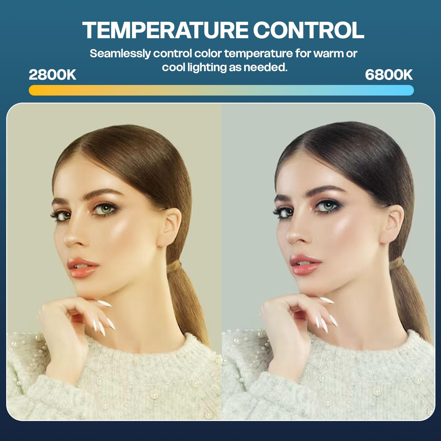 Adjustable Color Temperature (2800K–6800K): Easily switch from warm to cool tones with precise bi-color control to match ambient lighting or set the mood for your creative projects and film setups.