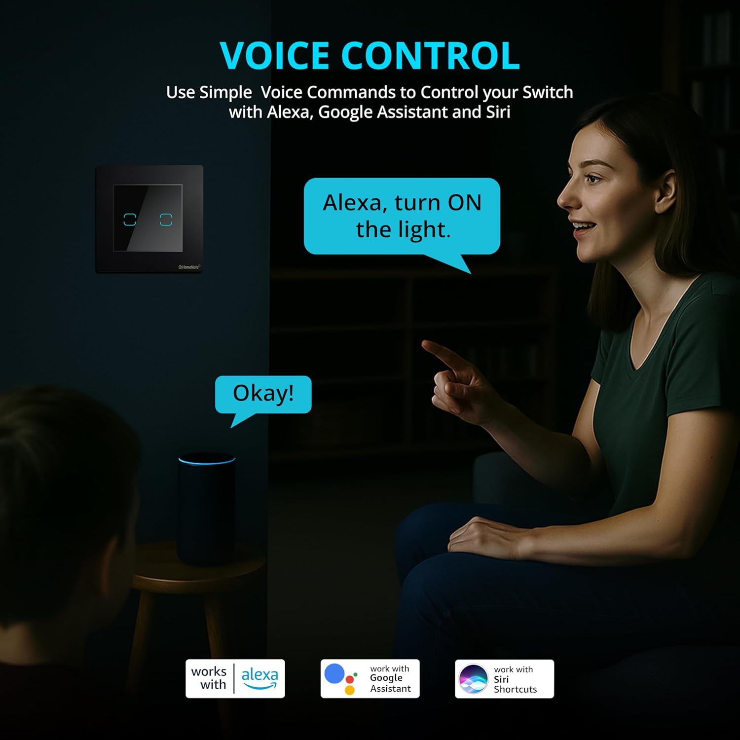 Compatible with Alexa & Google home : This touch switch works with Amazon Alexa / Google Home by using “HomeMate Smart ” App to control electronic devices with your voice.