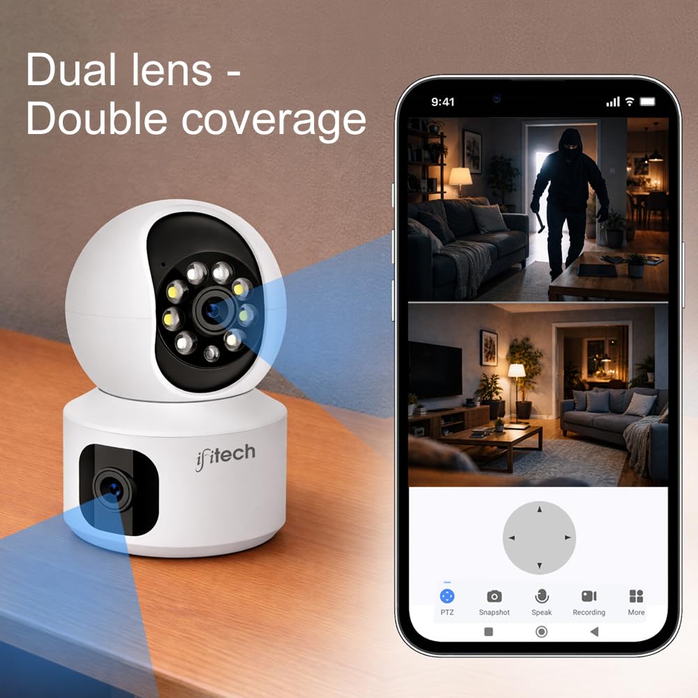 [4MP Dual-Lens Camera]: IFITech Dual-Lens Dome Camera features two 2MP lenses for Full HD video, delivering clear, detailed real-time monitoring.