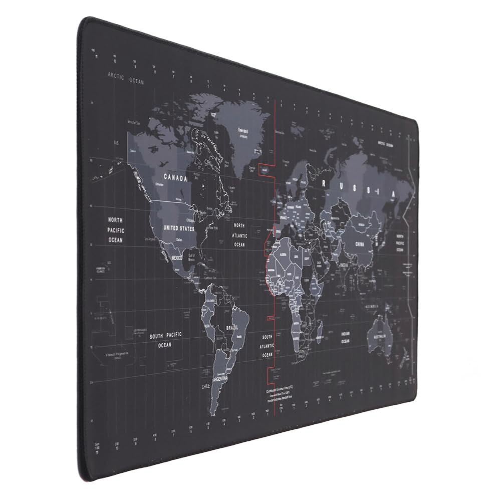 INOVERA World Map Anti-Slip Extended Desk Mat Gaming Rubber Stitched Mouse Pad for Laptop and Computer, 590L x 300B mm (Black, Medium)