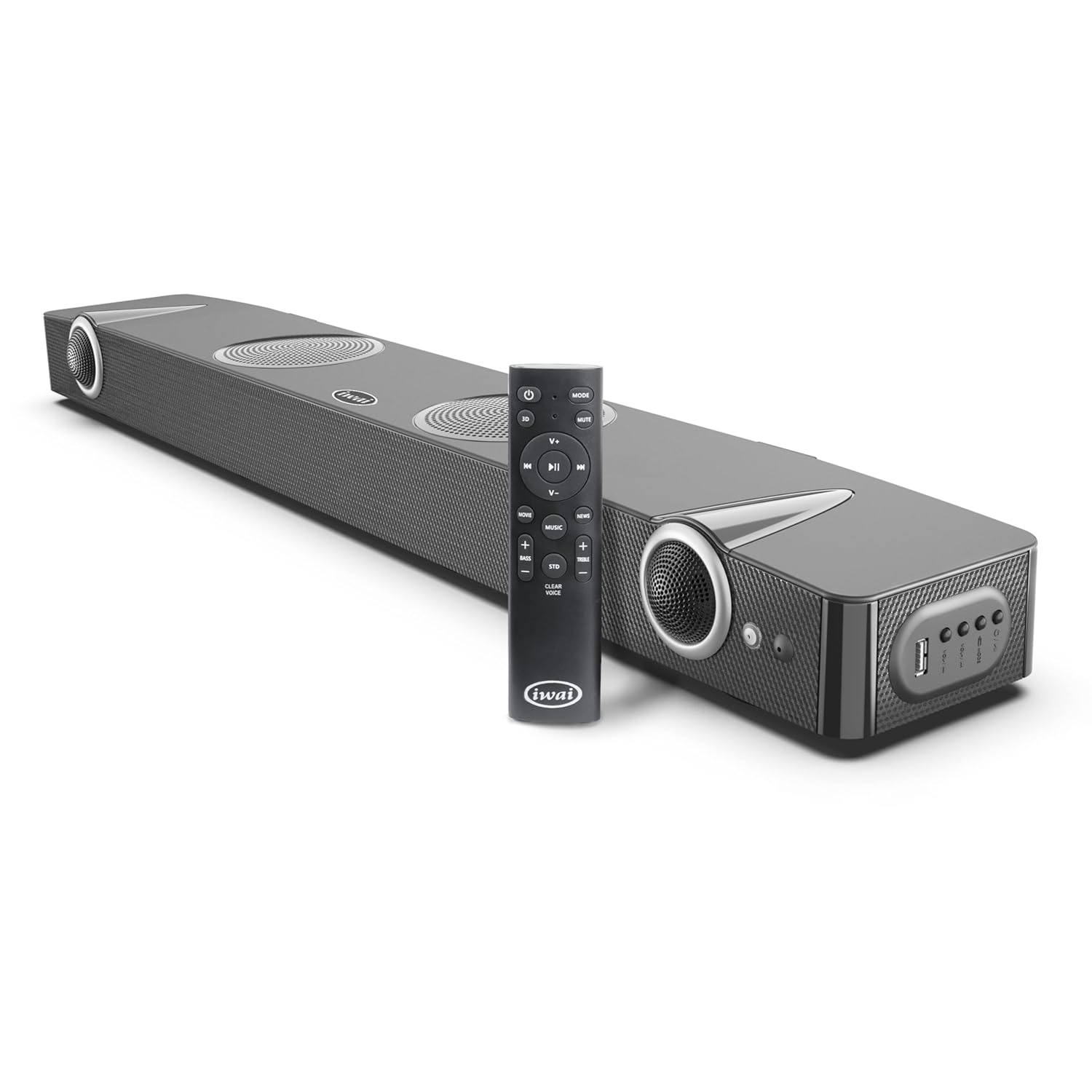 Presenting IWAI Thunder 2.2 Soundbar with 200W of mind-blowing sound. Experience entertainment like never before with the Iwai 2.2 Soundbar. The soundbar comes with 200W proprietary sound that brings Cinema to your home. Various EQs painstakingly tuned to enjoy Music, Movies, News etc. Clear Voice EQ specifically tuned for you to enjoy Serials and content with majorly Voice information. In addition to this there are Bass and Treble controls to further tailor the sound to your preference (in Standard Clear Voice Mode). 2 nos of 4” Rubber Surround Speakers facing upwards mainly handle the Low Frequency information. The pièce de resistance of this soundbar are the 2 nos of Low Resonance 28mm Silk Dome Tweeters that operate from 1kHz-20kHz. The tweeters starting from such a low frequency result in excellent dispersion and life like sound. The Low Resonance Silk Dome Tweeters use ferrofluid cooling so that it can operate at Higher Power Levels without distortion. It uses a Large Roll Silk Dome Diaphragm and a specially designed rear chamber which enable it to deliver sound from frequencies as low as 1KHz. High End Digital Signal Processor (DSP) helps reproduce Bass that belies the size of speaker.
