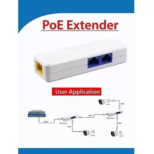JK VISION POE Repeater 10/100Mbps 1 to 2 POE Extender Networking Device, Supports 2 Cameras up to 100M, External Power not Required