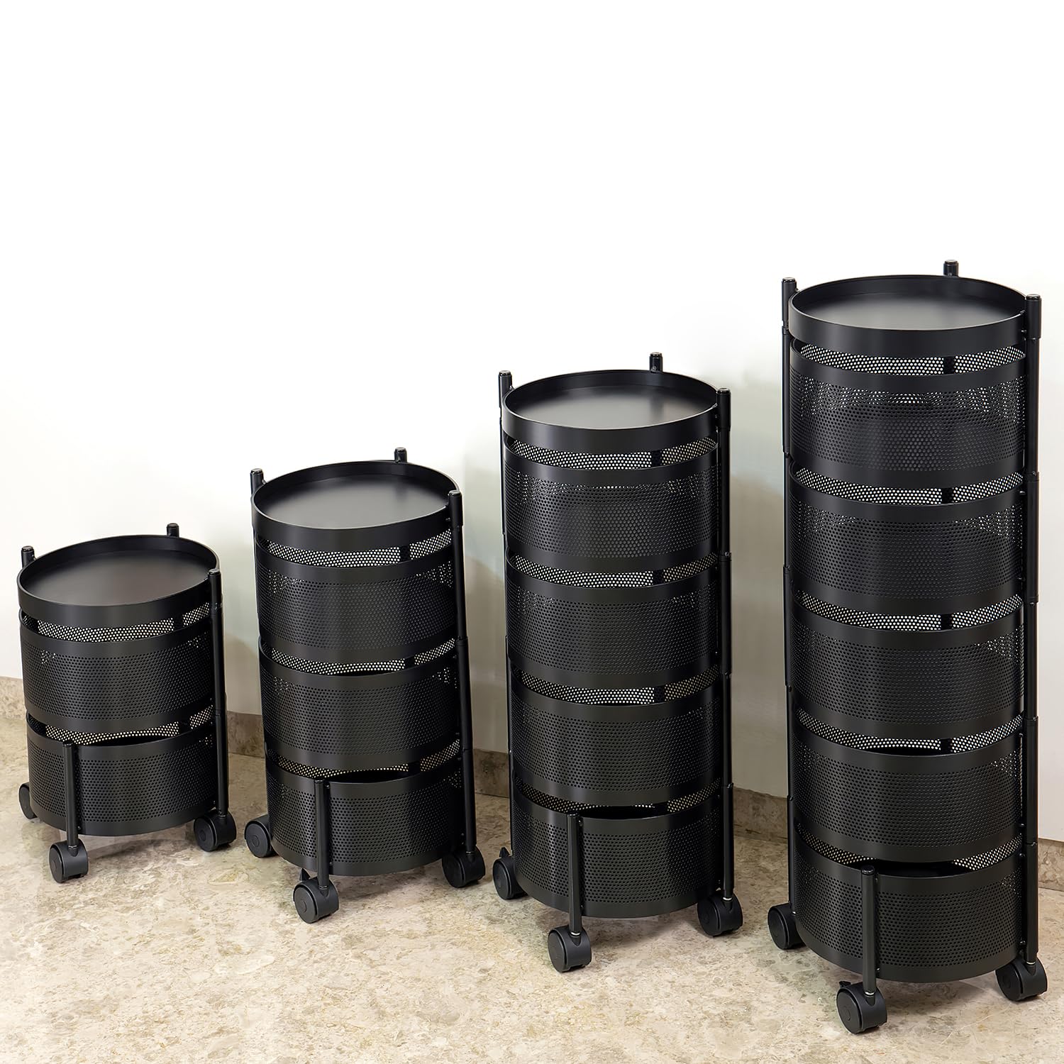 Kitchenwell Round Multi-Purpose Rotatable Trolley Storage Organizer Kitchen Storage Rack Design Fruits & Vegetable Onion Cutlery Dish Rack (Matt Black, Round – 3 Layer)