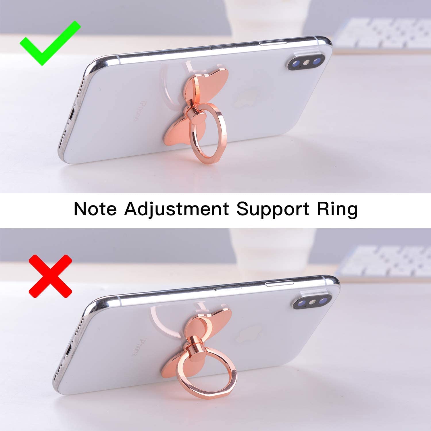 KolorFish Bow Shape Metal Mobile Phone Finger Ring Stability Holder Back Stand Collapsible Hand Grip Kickstand 360 for All Phones (Rose Gold)