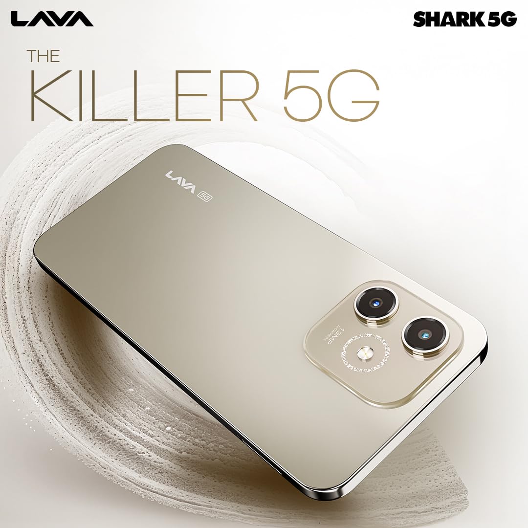Lava Shark 5G (Steller Gold, 4GB RAM, 64GB Storage) |Bigger 6.75″ HD+ Notch Display | Octacore 5G Processor | 13 MP AI Camera |5000 mAh Battery| IP54 Rated Dust & Water Splash Proof