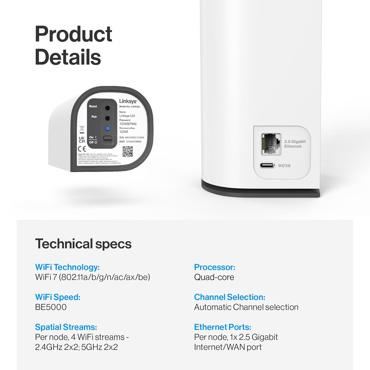 Linksys Velop Micro 7 Mesh System | Dual-Band with BE5000 Speed | Whole Home Coverage up to 200 m2 per Node | 2.5 Gbps Ethernet | 1.8X Faster WiFi Than WiFi 6 | 3-Pack