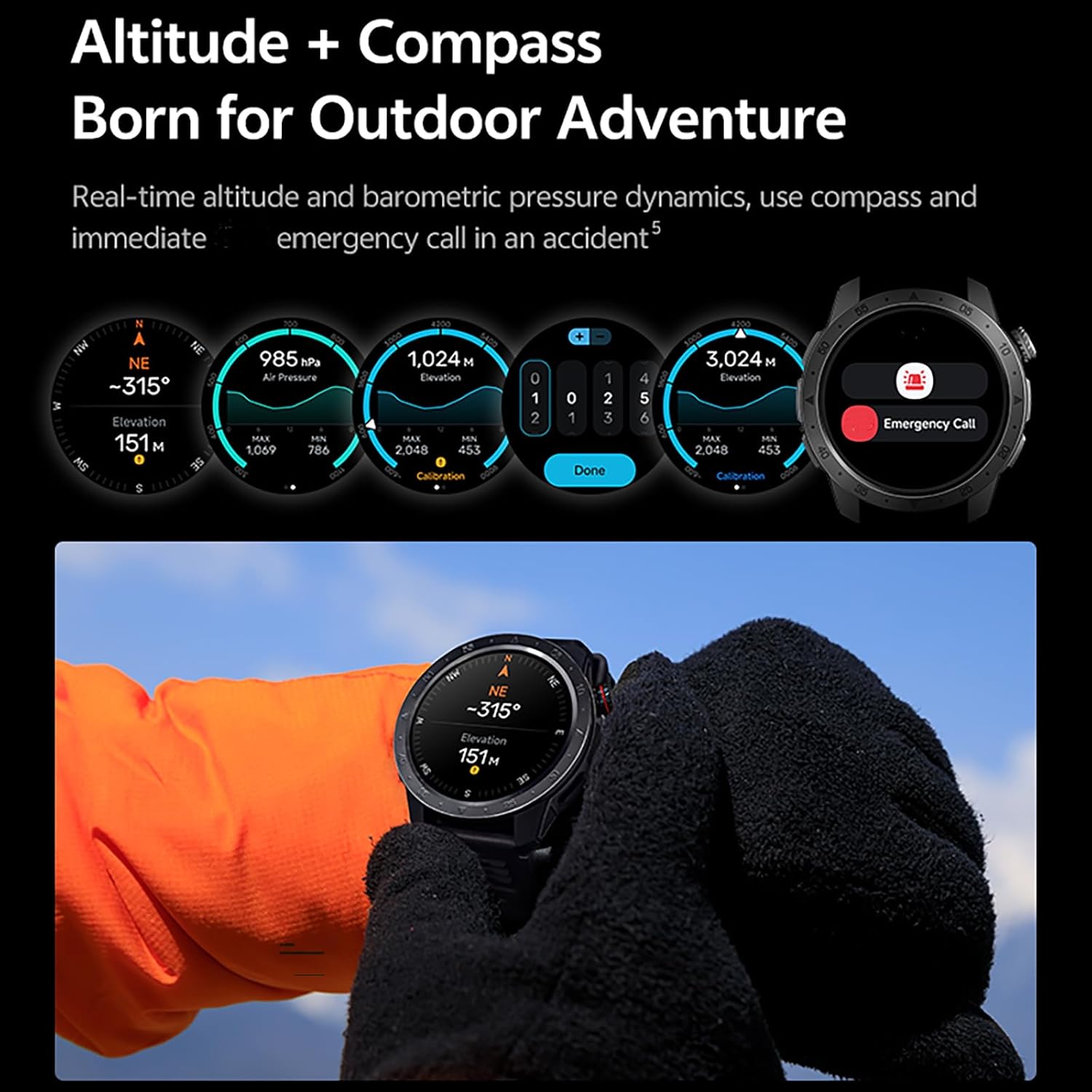 Compass + Altitude+ Barometric, Your Companion for Exploration — The tracker watch also includes an internal compass, altitude pressurization, and altimeter sensors that show your current position, altitude, and air pressure. It helps you navigate challenging terrains-Perfect for Outdoor Exploration