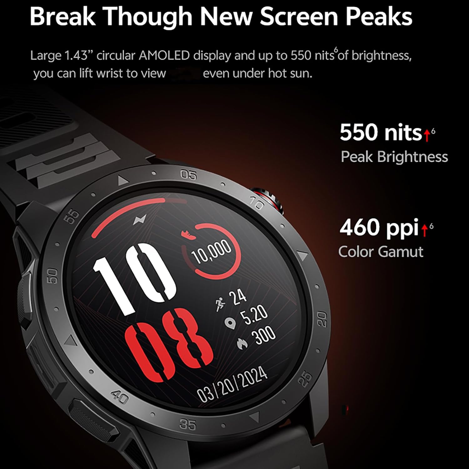 A nice mix of Sport and Business, Digital Watch with 1.43 inch AMOLED high brightness Full Touch Screen, easy control with the sensitive touch screen , nice for everyday use