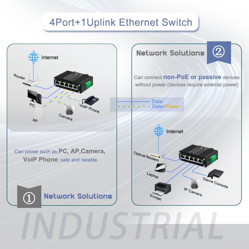 Widely Used:The managed 5 port industrial switch is ideal for industrial networking, intelligent transportation systems (ITS) and are also suitable for many military and utility market applications.