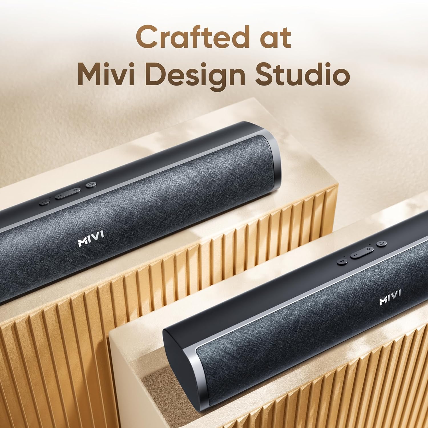 Mivi Fort Q26 Soundbar with 26W Powerful Audio, 2.0 Channel with Dual Full-Range Speakers, Multiple Input Modes, 6H Playtime, 2500mAh Battery, Made in India Soundbar for TV