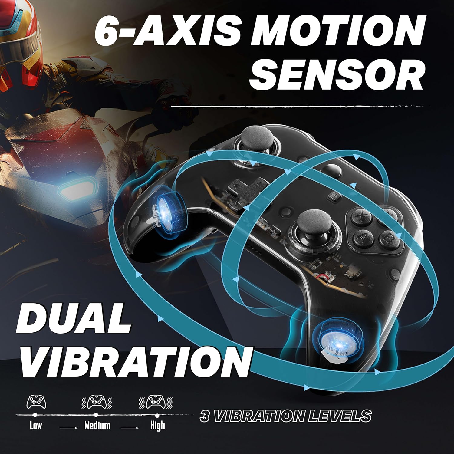 ADVANCED MOTION & VIBRATION: 6-AXIS motion sensor with calibration and dual motor vibration (3 intensity levels) provides an immersive gaming experience