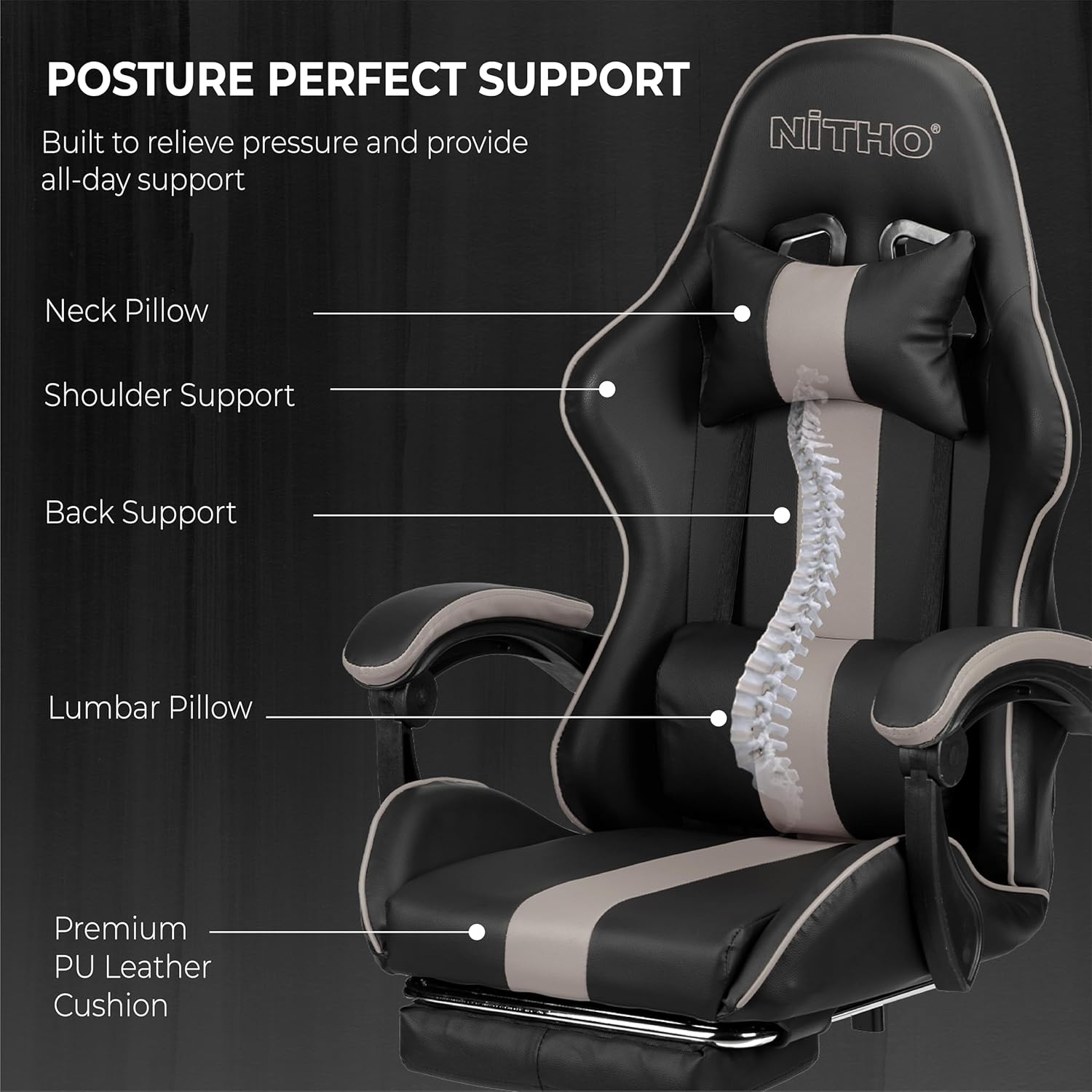 NiTHO Raven Gaming Office Chair | Ergonomic Computer Chair with Linkage Armrests, Foldable Footrest, Class 3 Gas Lift, 135° Adjustable Recline, Swivel Chair for Gaming or Home Office, Black