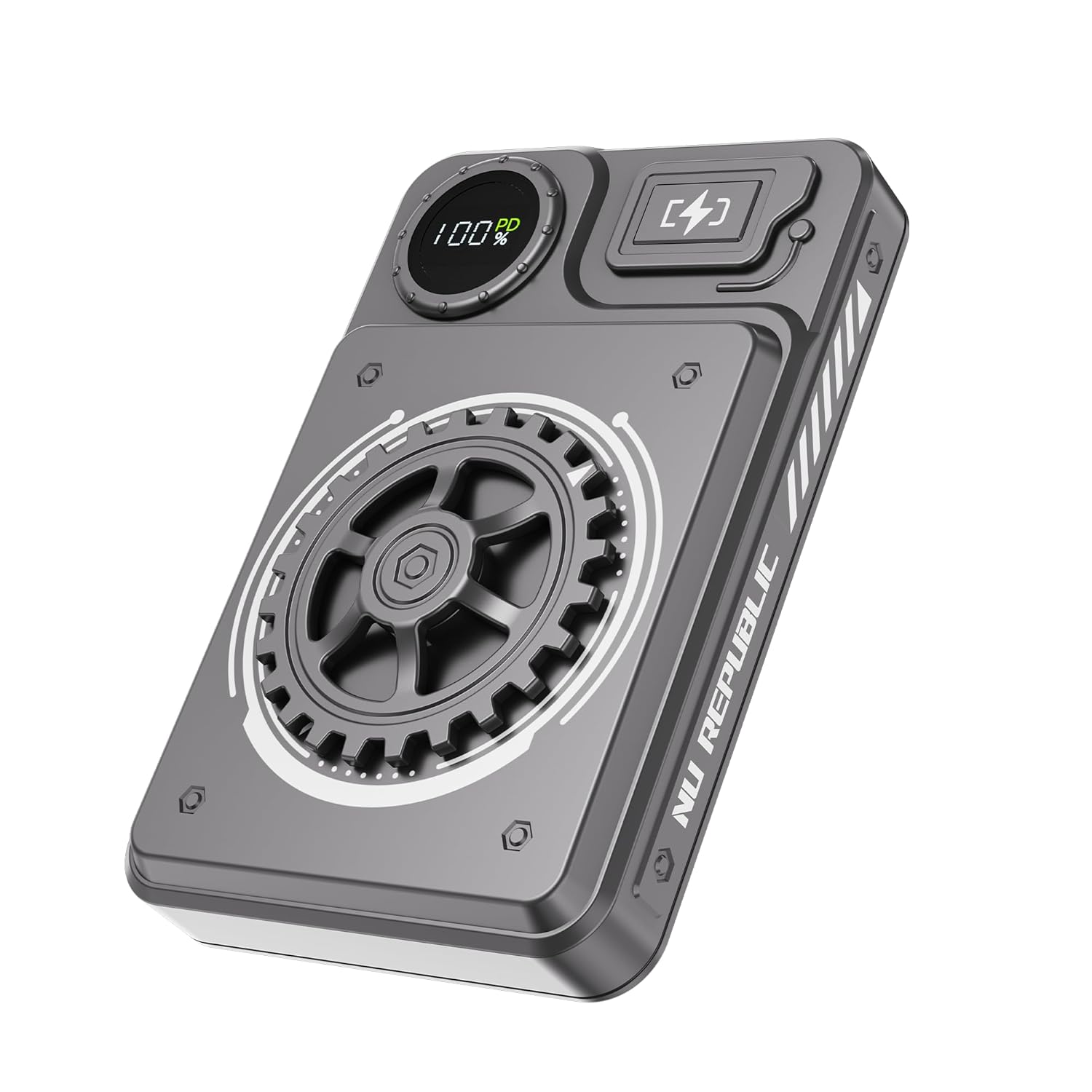 Nu Republic Magsafe Cybotron Spin 10,000 mAh Wireless Powerbank with 22.5W Dual Input Lightning & Type-C, 15W Wireless Charging, Overcharge & Overheat Protection (Metallic Grey)
