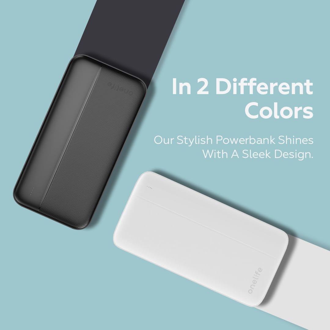 One Life 20000 mAh 12W Fast Charging Power Bank | 2 USB Output | Type C Input| Ultra Slim Lithium Polymer Power Bank for iPhone Android Mobiles & Tablets (White)