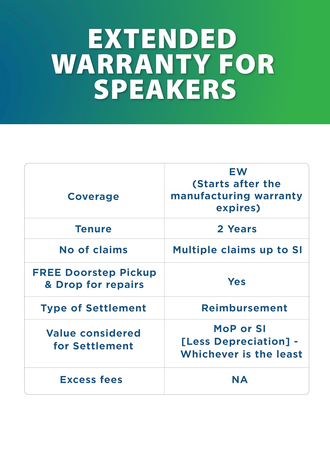 Remain stress free : ‘- Authorised Service Centre – Qualified Service Experts – Genuine Spare Parts only – Repair in 10 days or Refund – 100% cashless – No hidden fees – Unlimited claims till invoice value